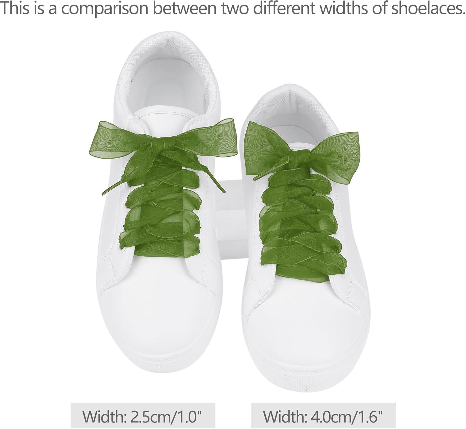 Allegra K 2 Pairs Flat Snow Yarn Shoelaces 2.5cm/4cm Wide Transparent Shoe Laces for Sneakers(Army Green)