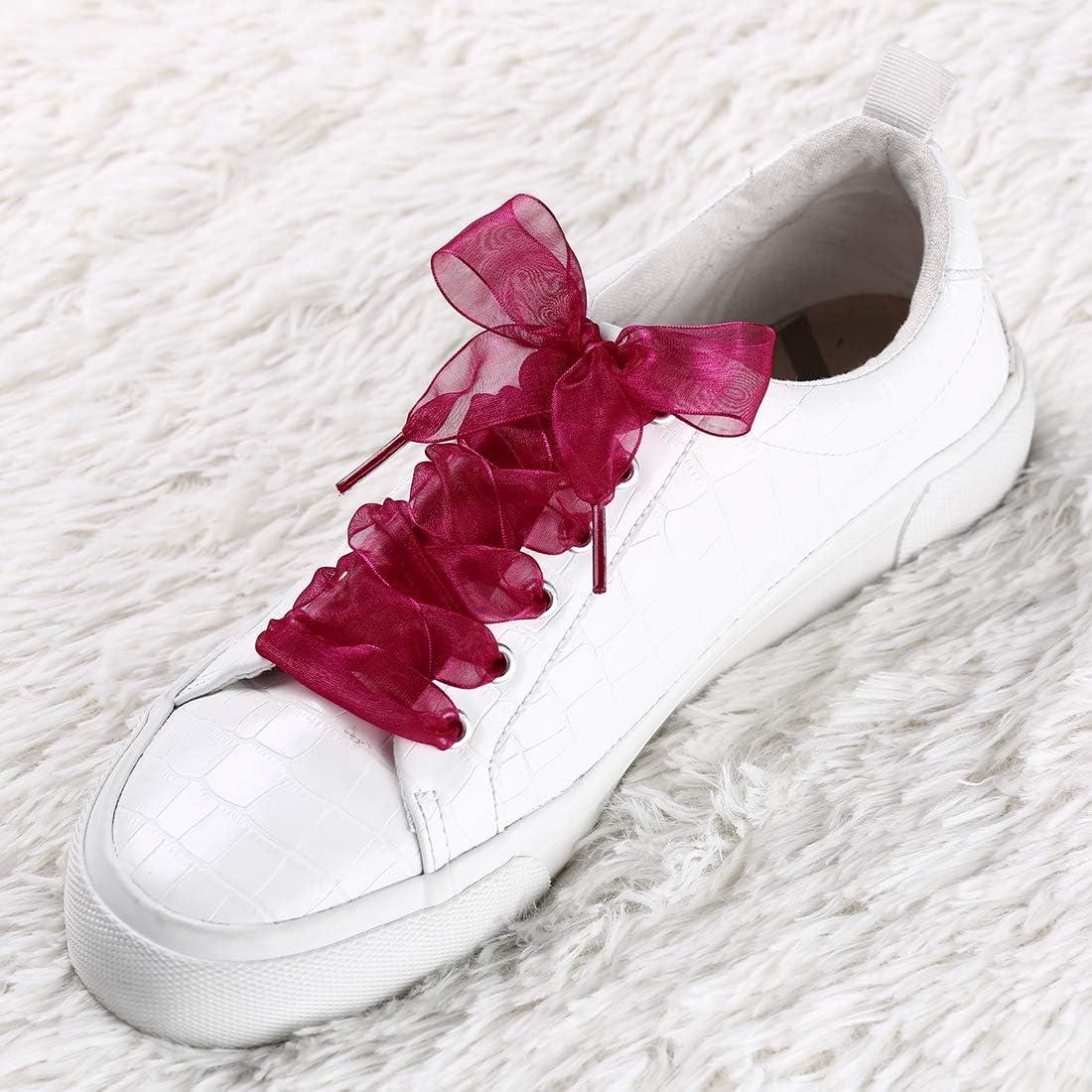 Allegra K 2 Pairs Flat Snow Yarn Shoelaces 2.5cm/4cm Wide Transparent Shoe Laces for Sneakers(Fuchsia)