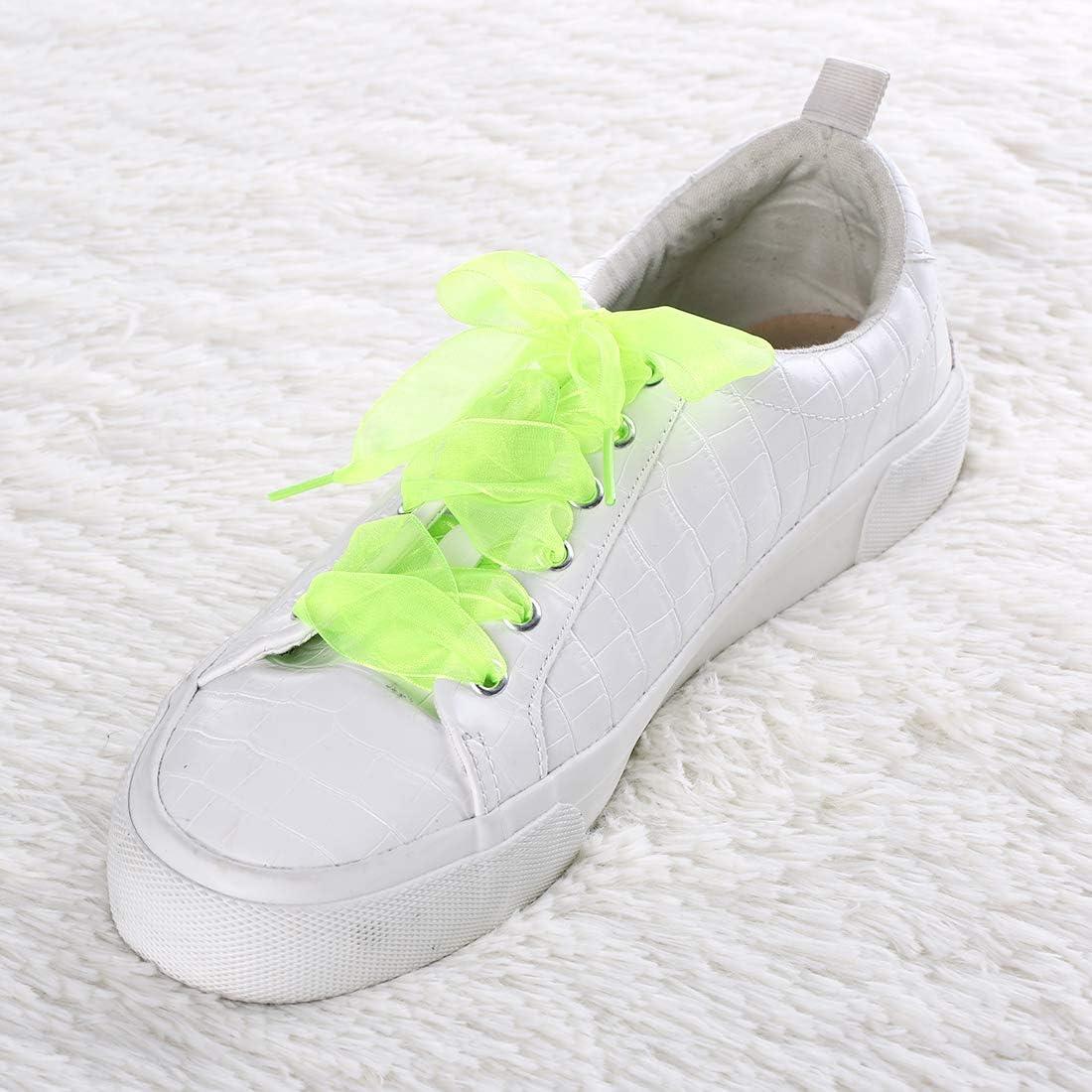 Allegra K 2 Pairs Flat Snow Yarn Shoelaces 2.5cm/4cm Wide Transparent Shoe Laces for Sneakers(Light Green)