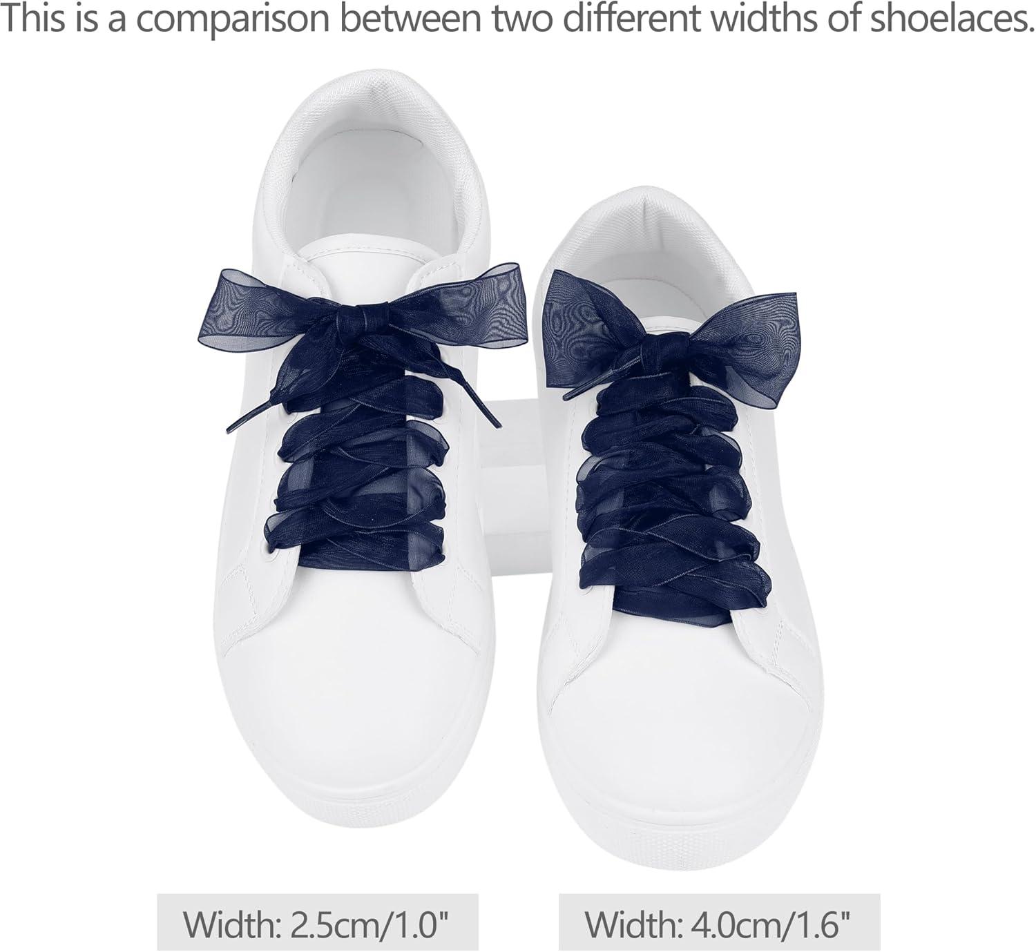 Allegra K 2 Pairs Flat Snow Yarn Shoelaces 2.5cm/4cm Wide Transparent Shoe Laces for Sneakers(Navy Blue)