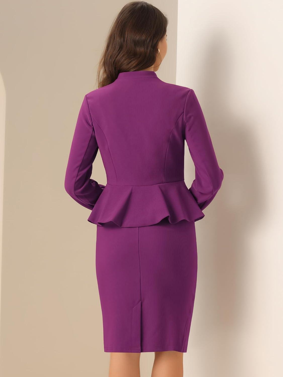 Allegra K 2 Piece Skirt Sets for Women Long Sleeve Blazer and Pencil Skirt Business Suits(Dark Purple)