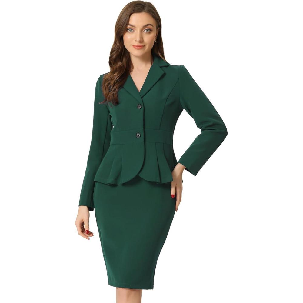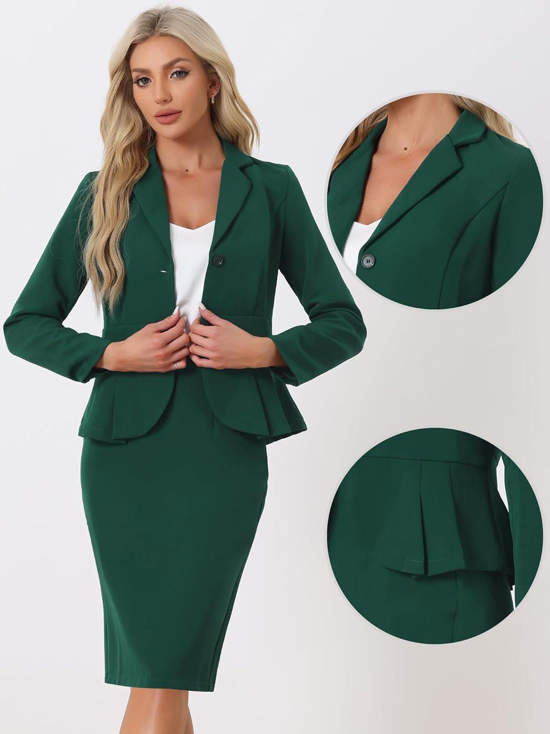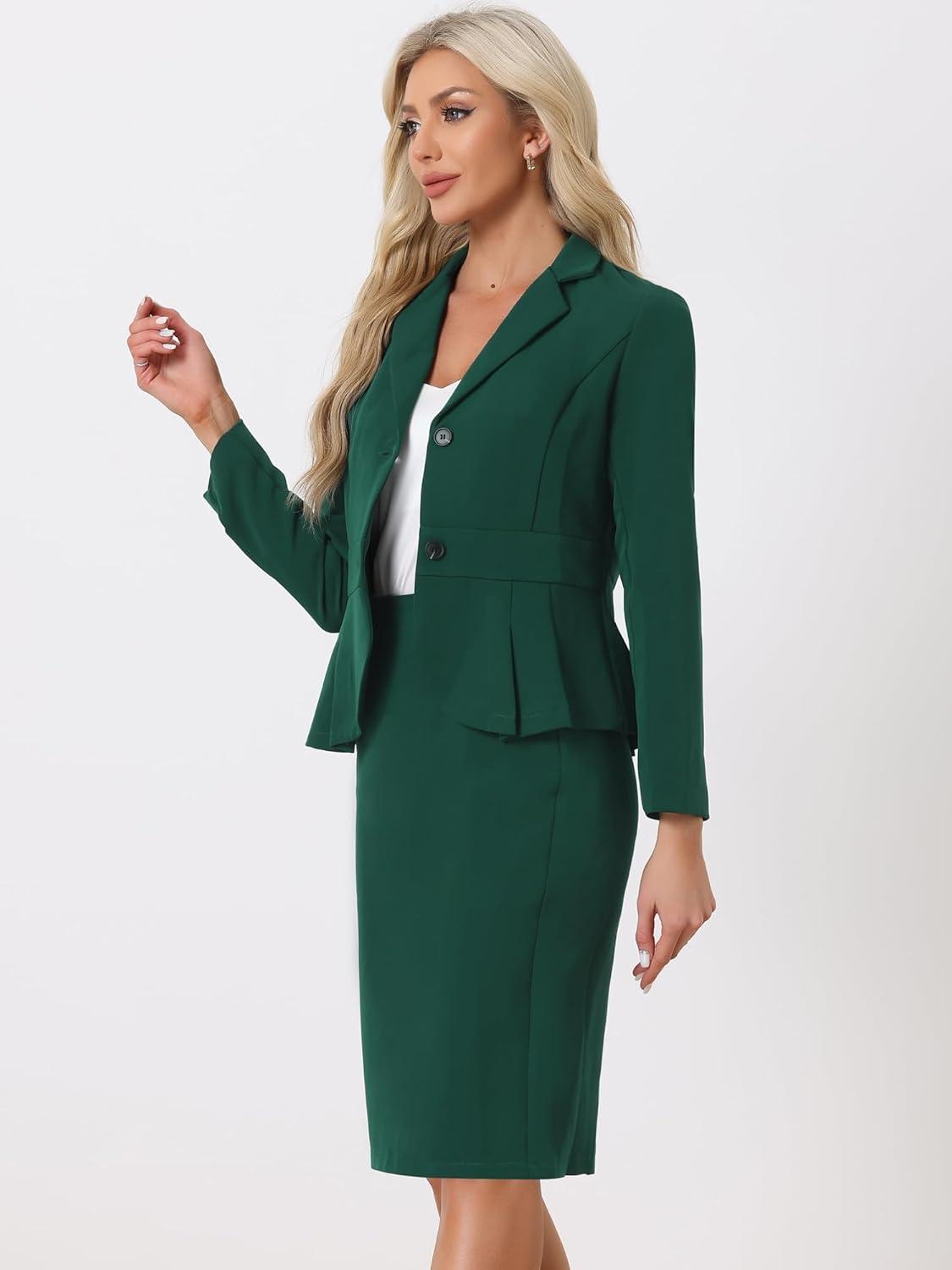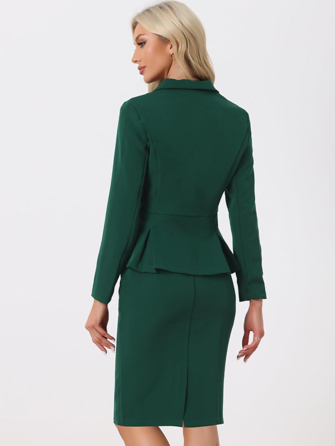 Allegra K 2 Piece Suit Skirt Sets for Women Blazer and Pencil Skirts Formal Office Business Casual Outfits(Dark Green)