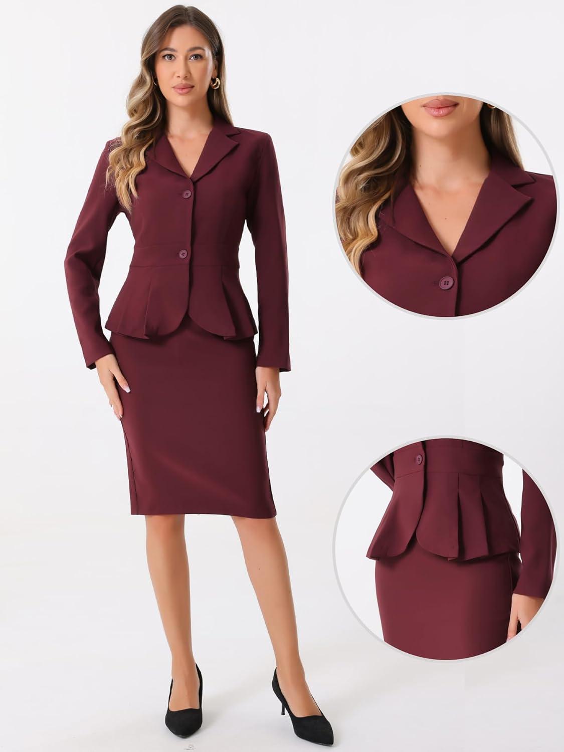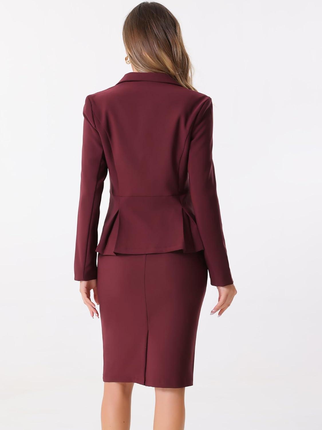 Allegra K 2 Piece Suit Skirt Sets for Women Blazer and Pencil Skirts Formal Office Business Casual Outfits(Deep Purple)