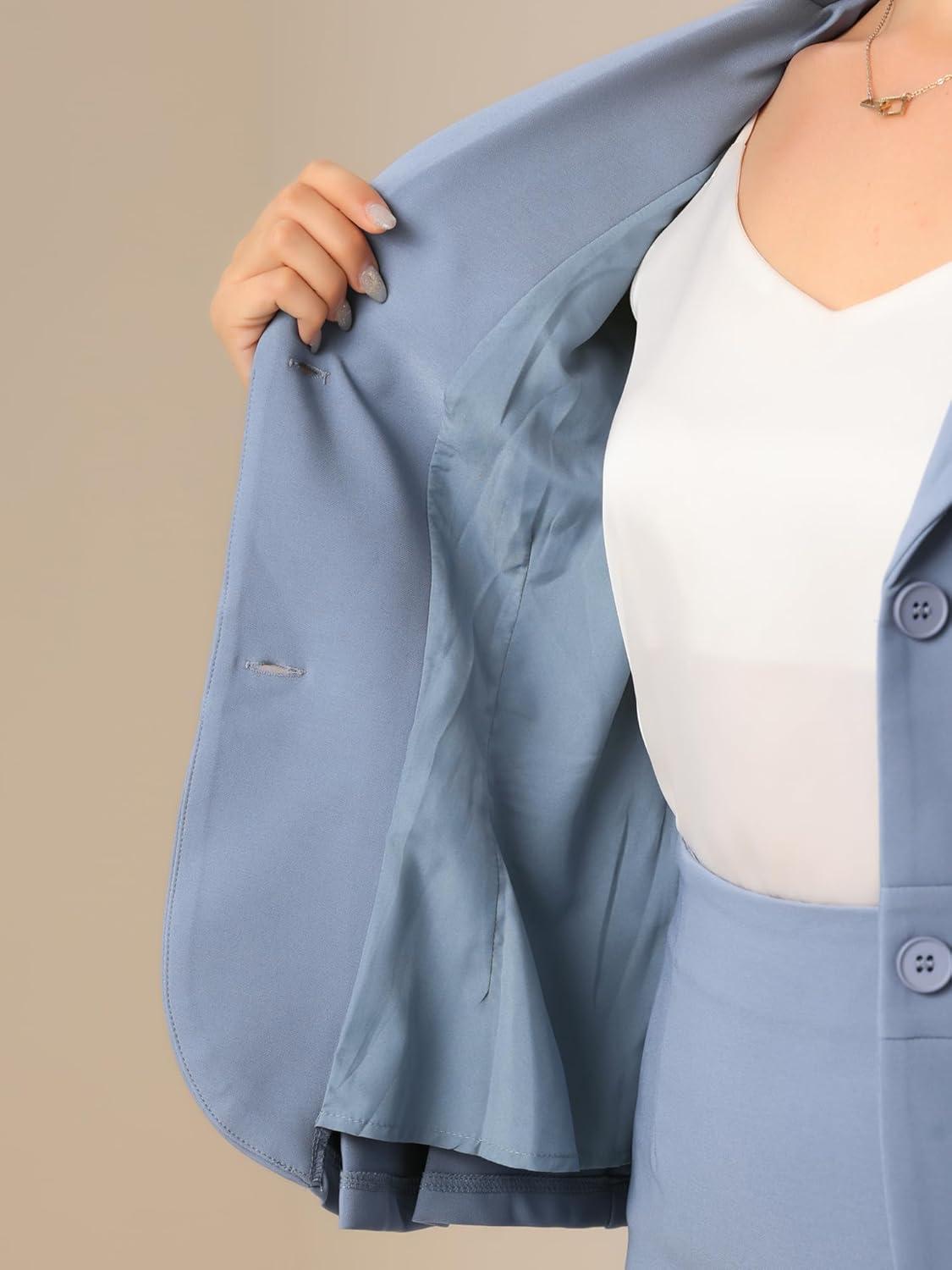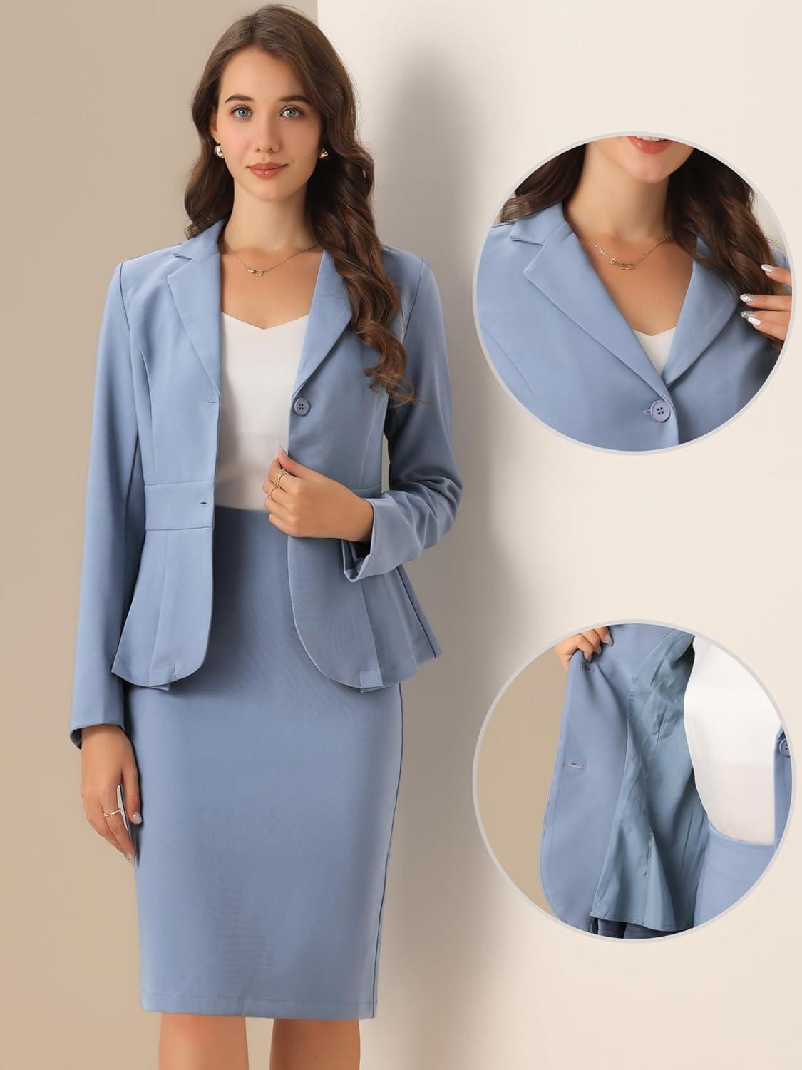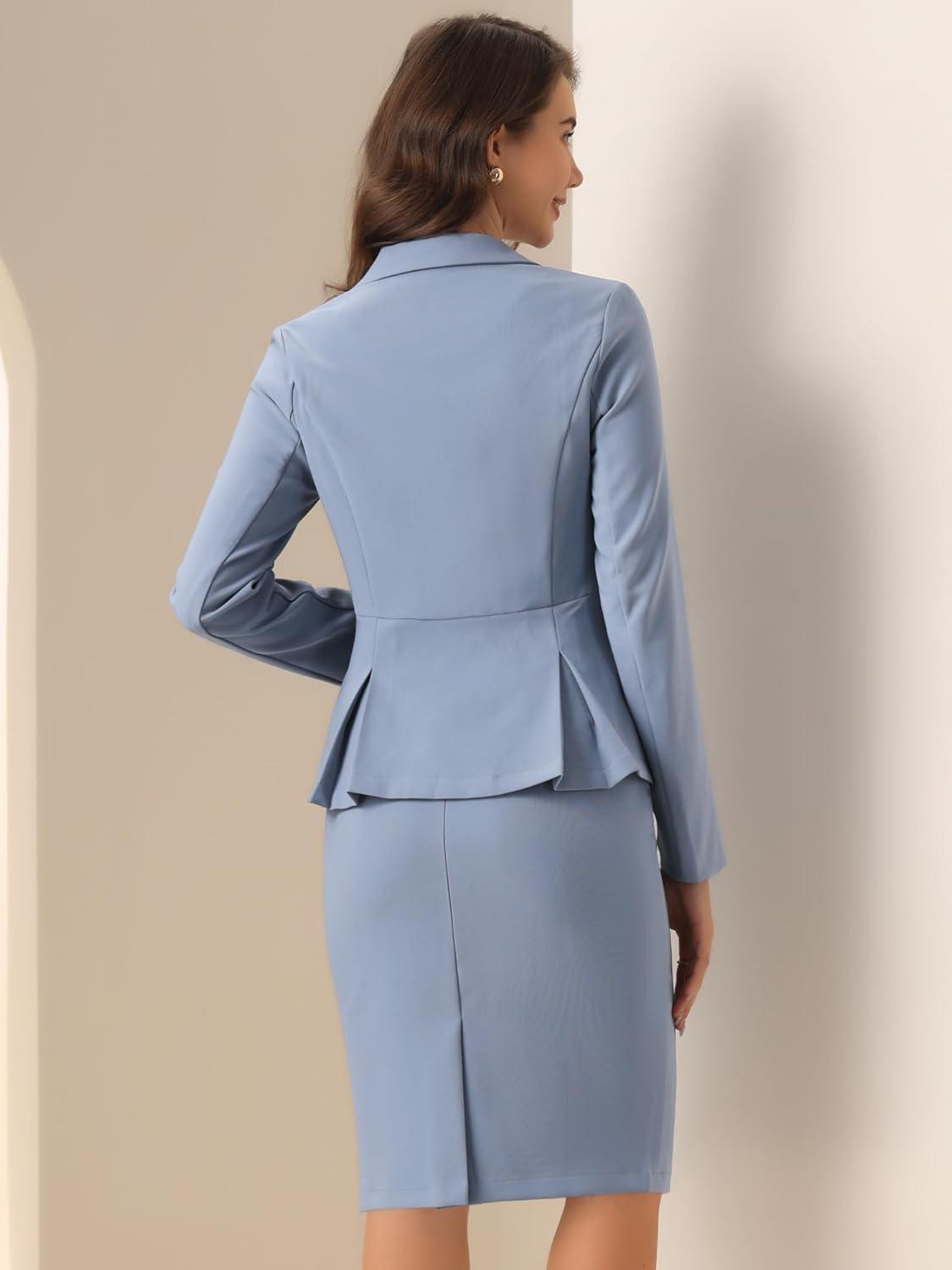 Allegra K 2 Piece Suit Skirt Sets for Women Blazer and Pencil Skirts Formal Office Business Casual Outfits(Gray Blue)