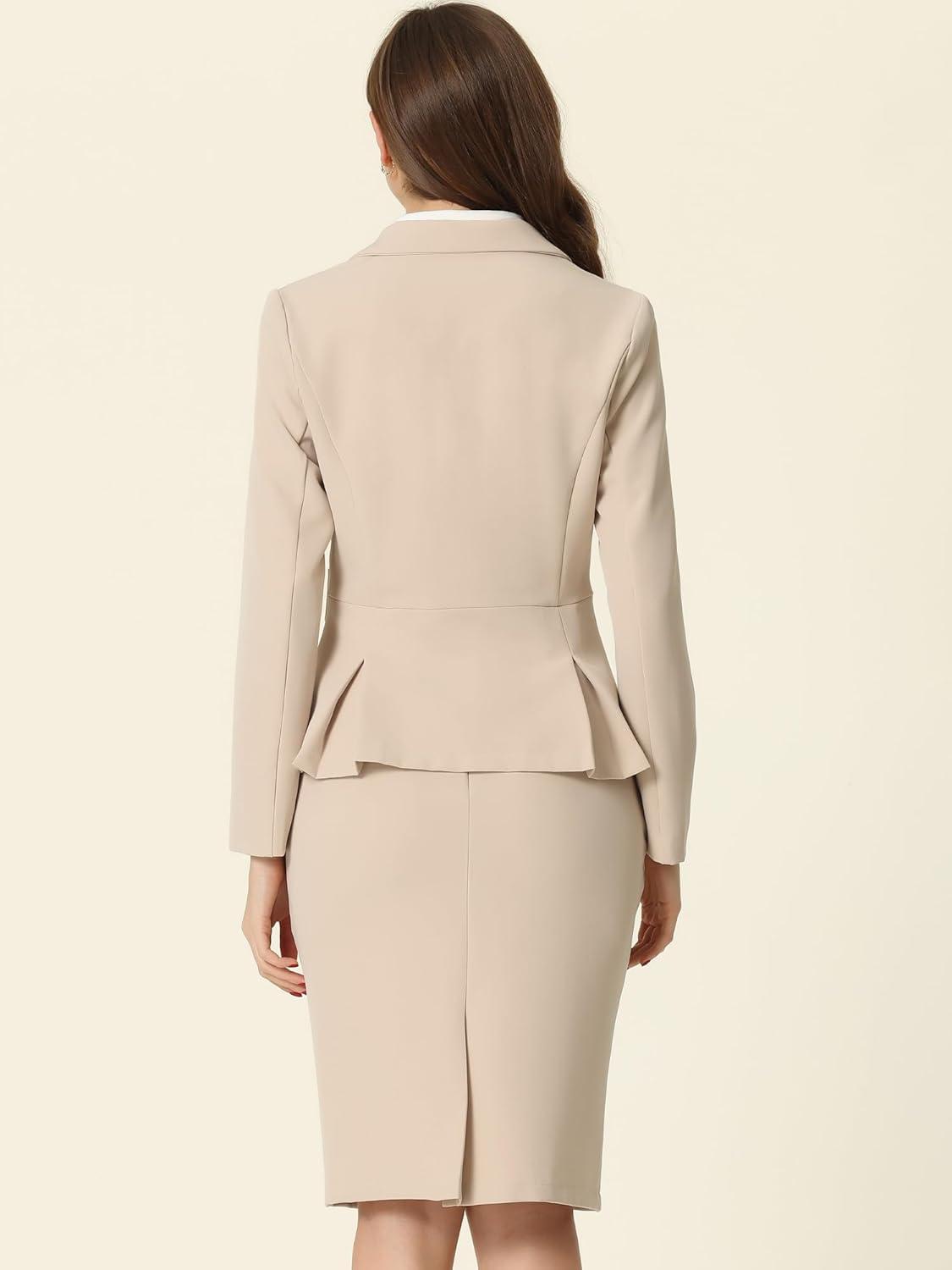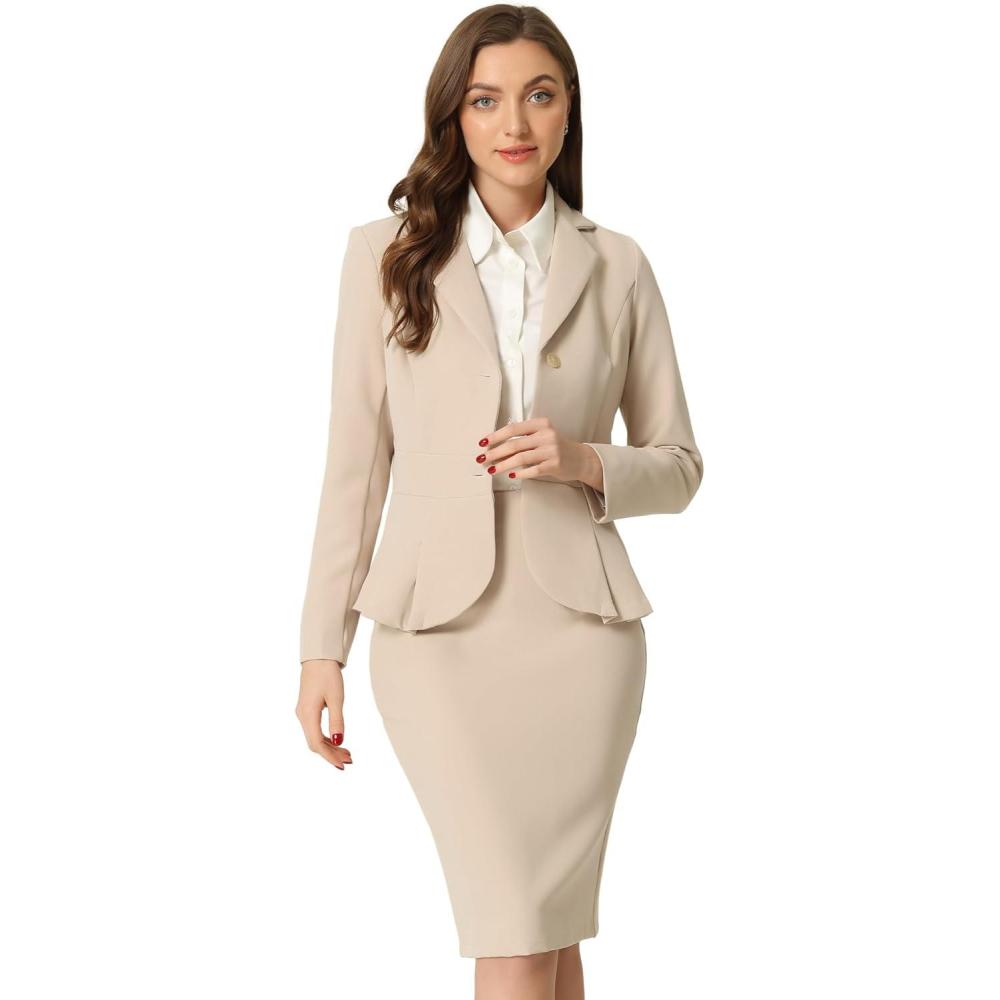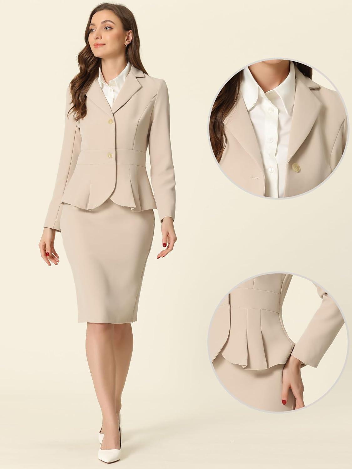 Allegra K 2 Piece Suit Skirt Sets for Women Blazer and Pencil Skirts Formal Office Business Casual Outfits(Khaki)