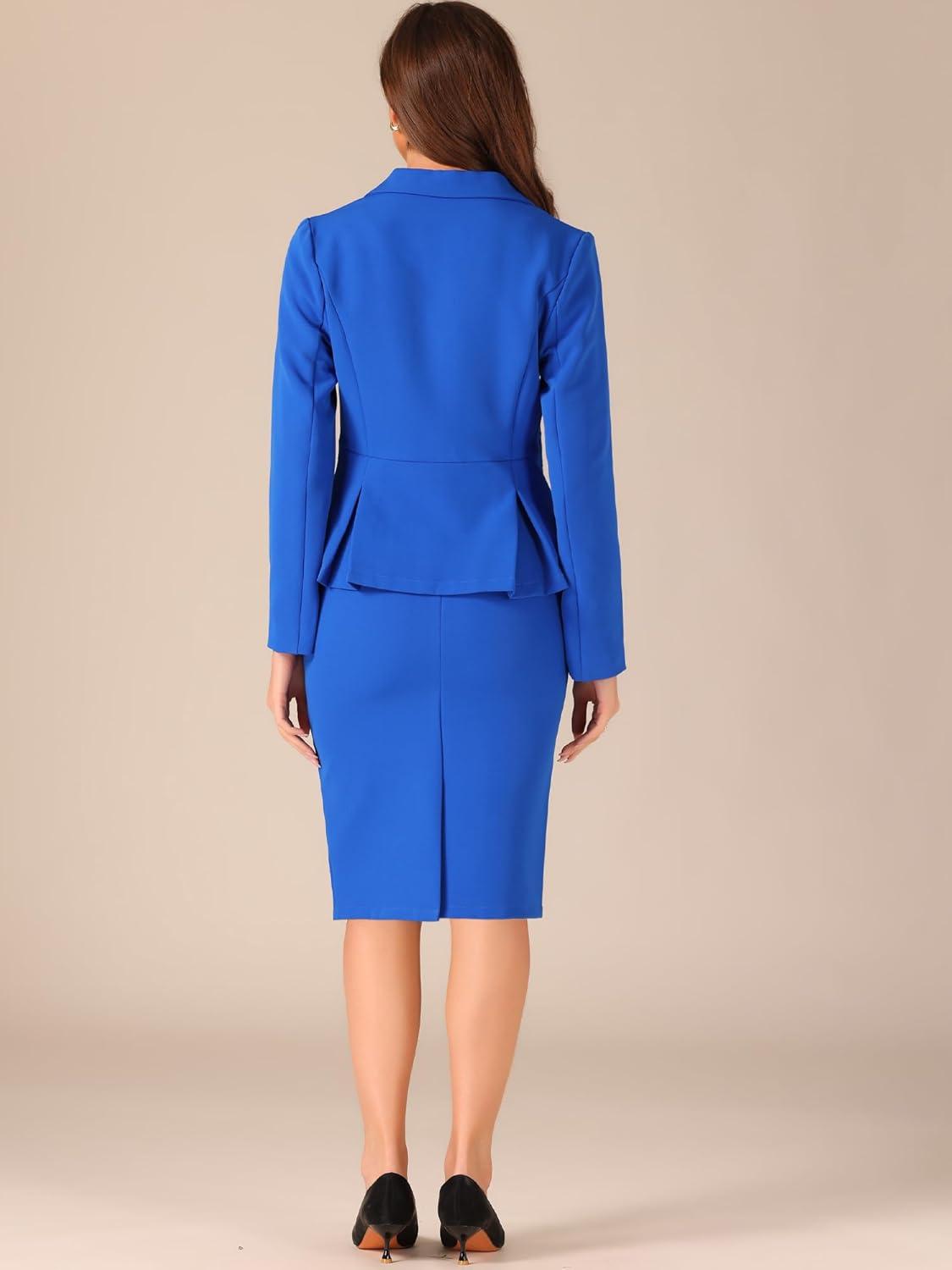 Allegra K 2 Piece Suit Skirt Sets for Women Blazer and Pencil Skirts Formal Office Business Casual Outfits(Royal Blue)