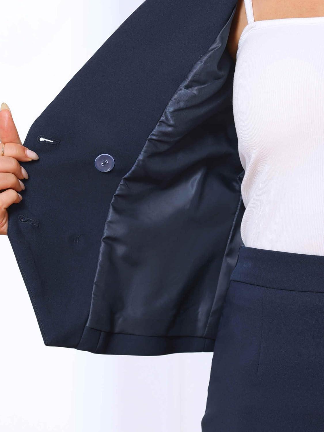 Allegra K 2 Pieces Skirt Suit Sets for Women's Business Notched Lapel Double Breasted Blazer Office Pencil Skirt Outfits(Blue)