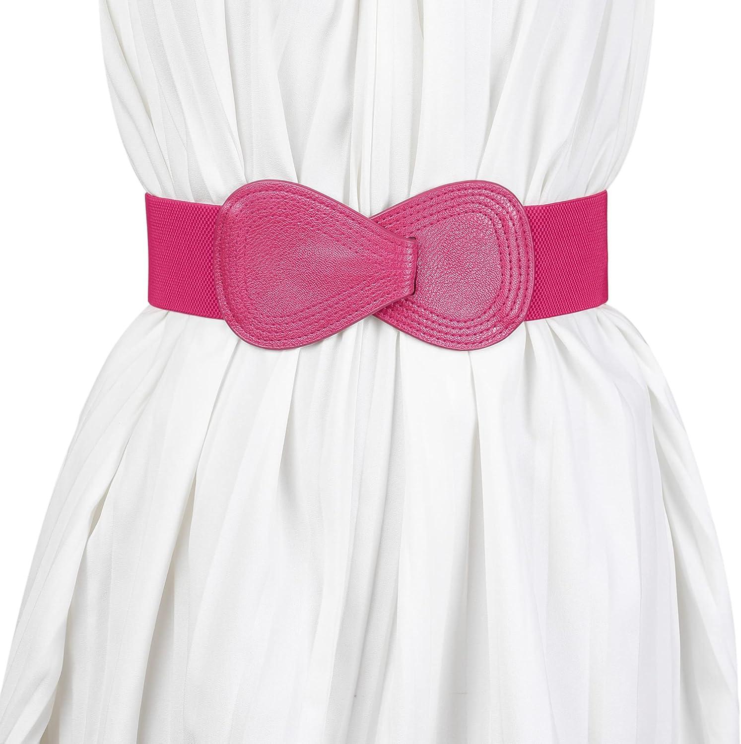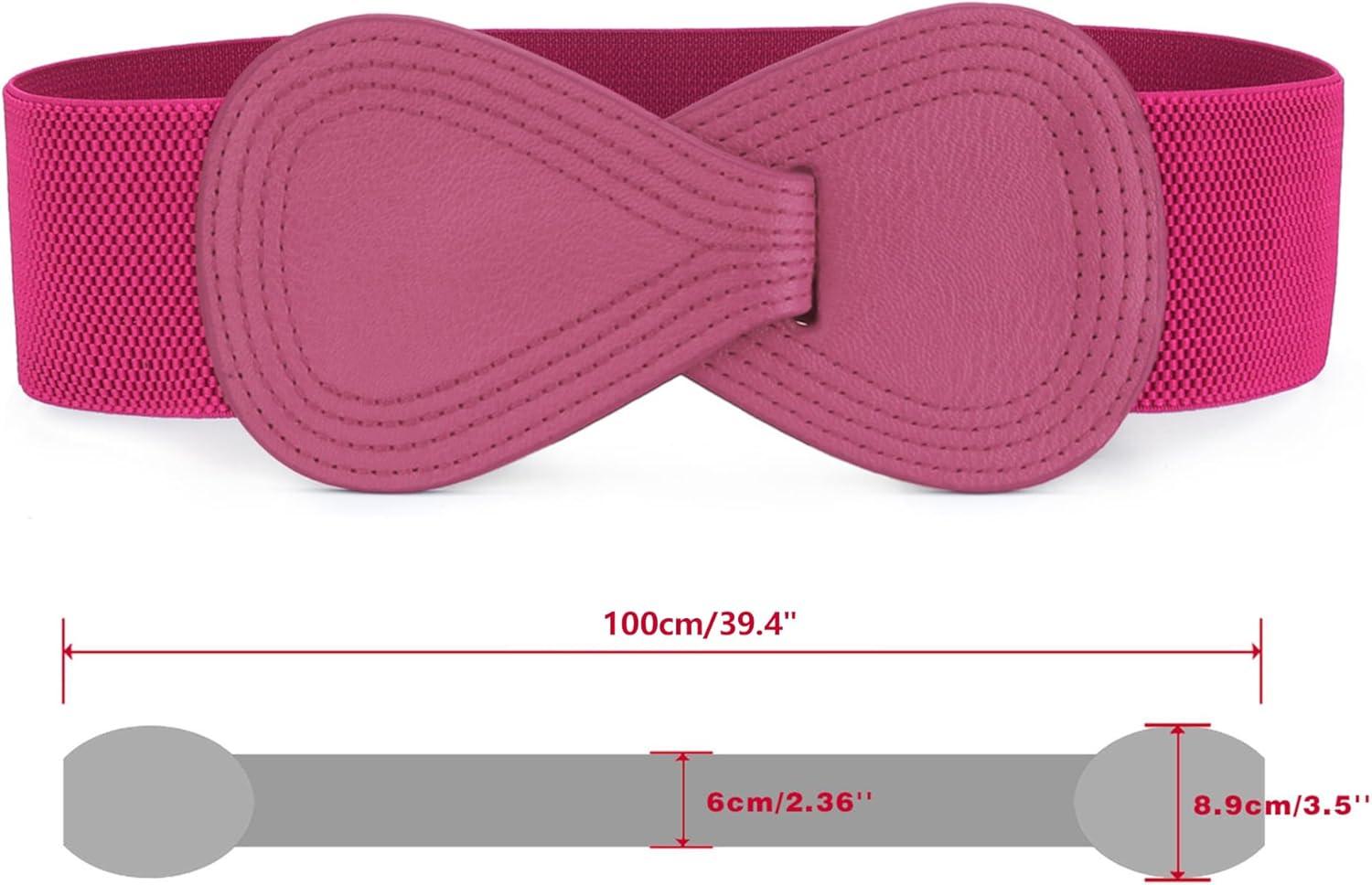 imageAllegra K 2Pcs Women Plus Size Elastic Belt Interlock 8Shaped Buckle Stretch Waistband Belts for DressBlue  Rose Red