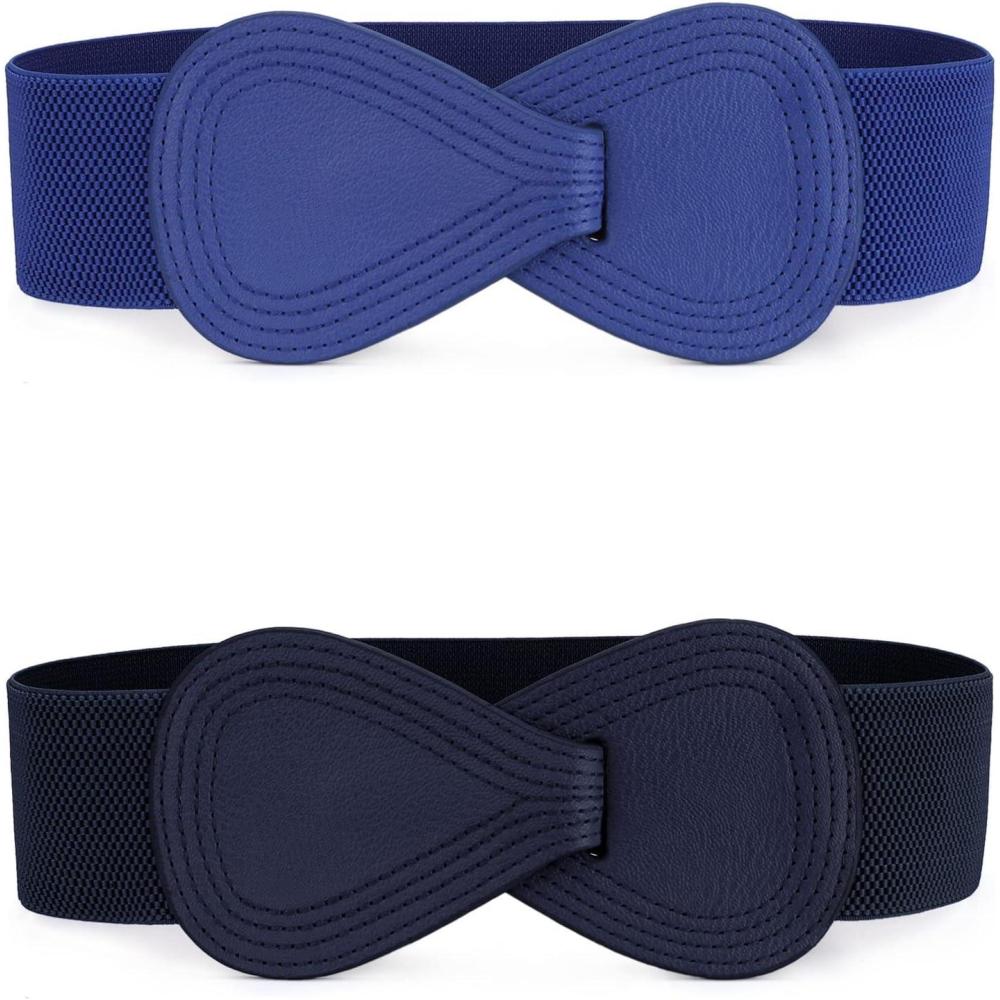Allegra K 2Pcs Women Plus Size Elastic Dress Belts Interlock Buckle Strethy Waist Belt for Dress(Navy Blue & Blue)