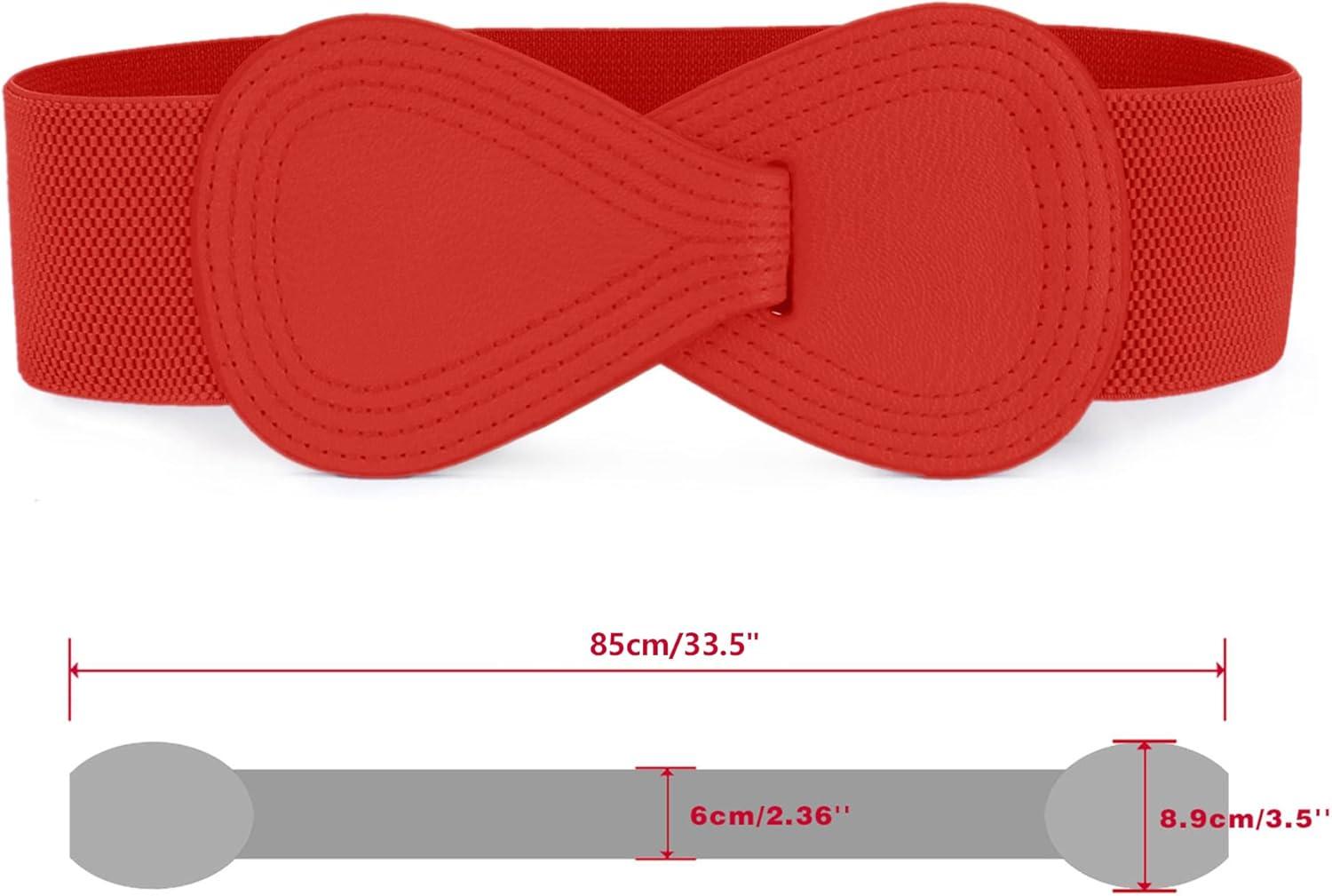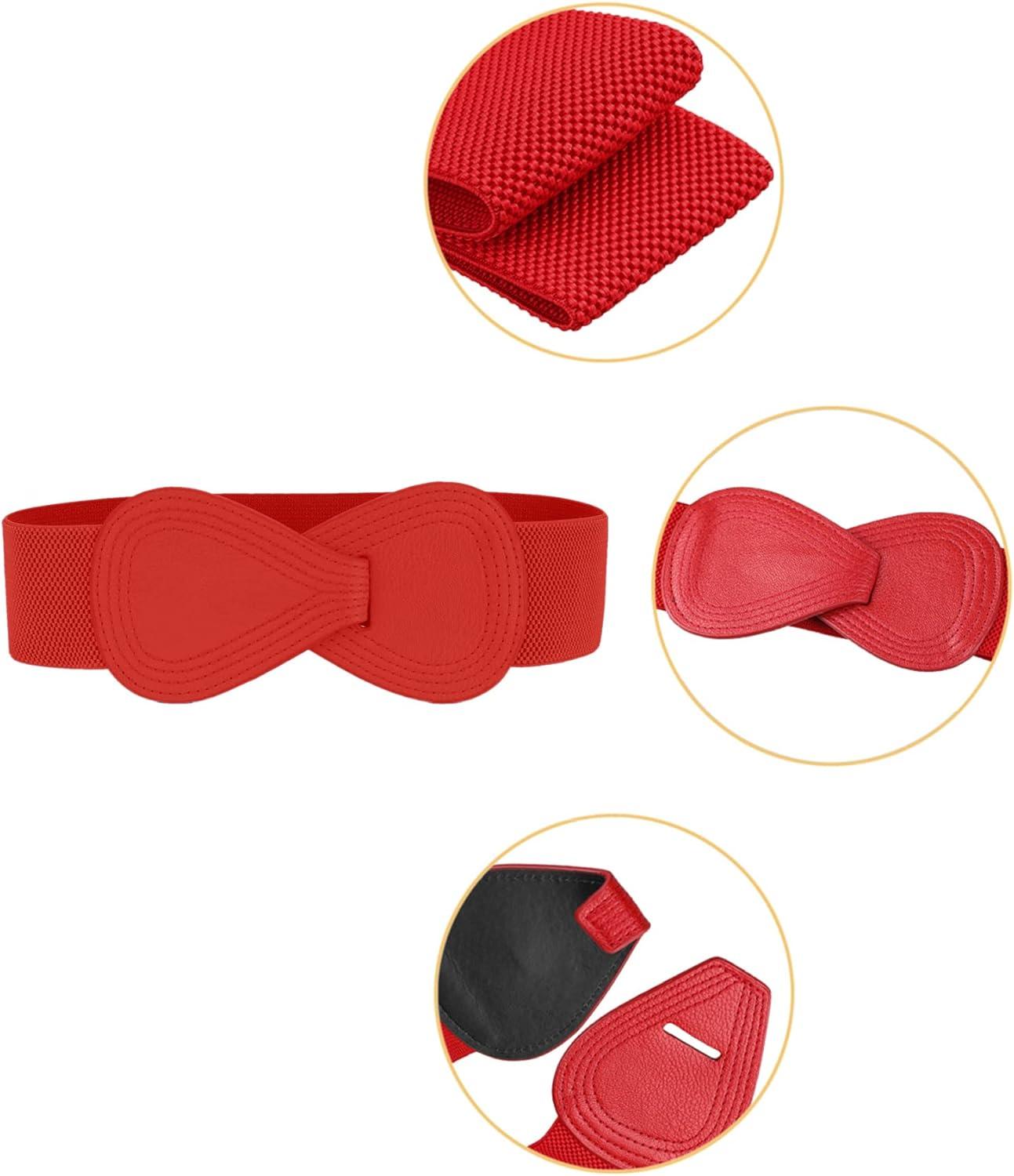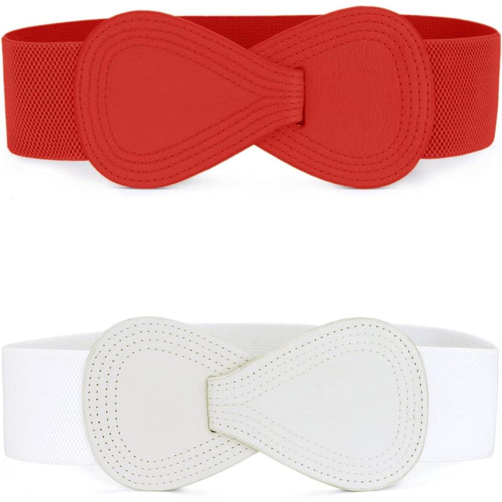 Allegra K 2Pcs Women’s Plus Size Stretchy Waist Belt 8-shaped Faux Leather Elastic Dress Belts(White & Red)