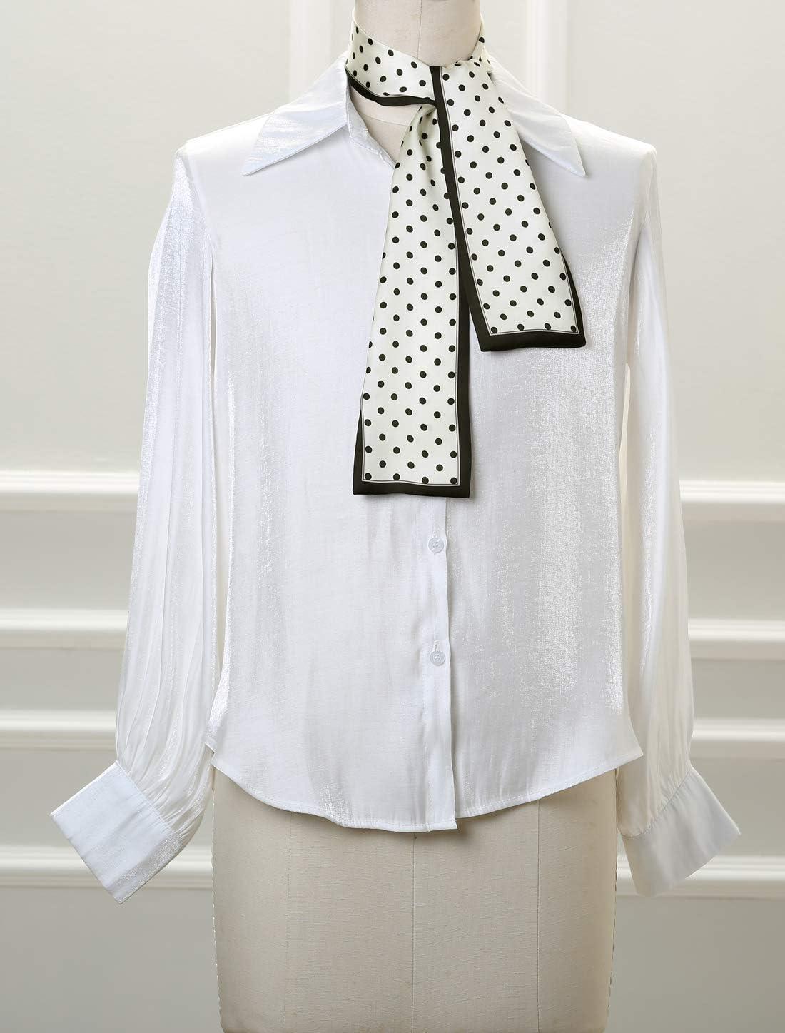 Allegra K 50s Ribbon Skinny Scarf Lovely Polka Dots Pattern for Bags Hair Band Neck Wraps(Black Big Dot)