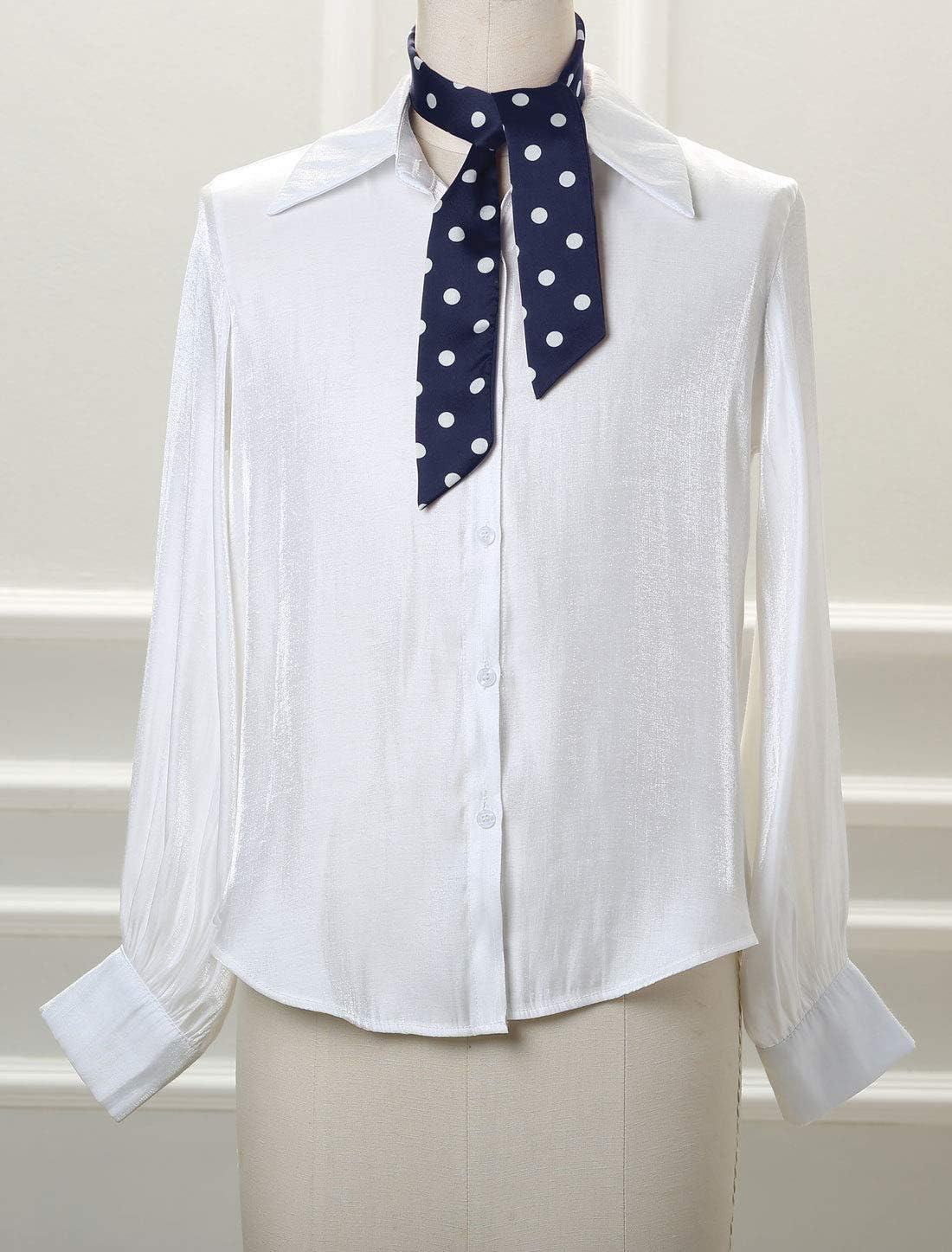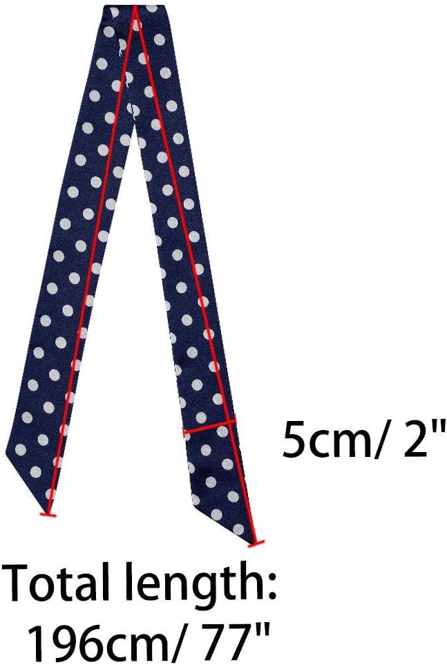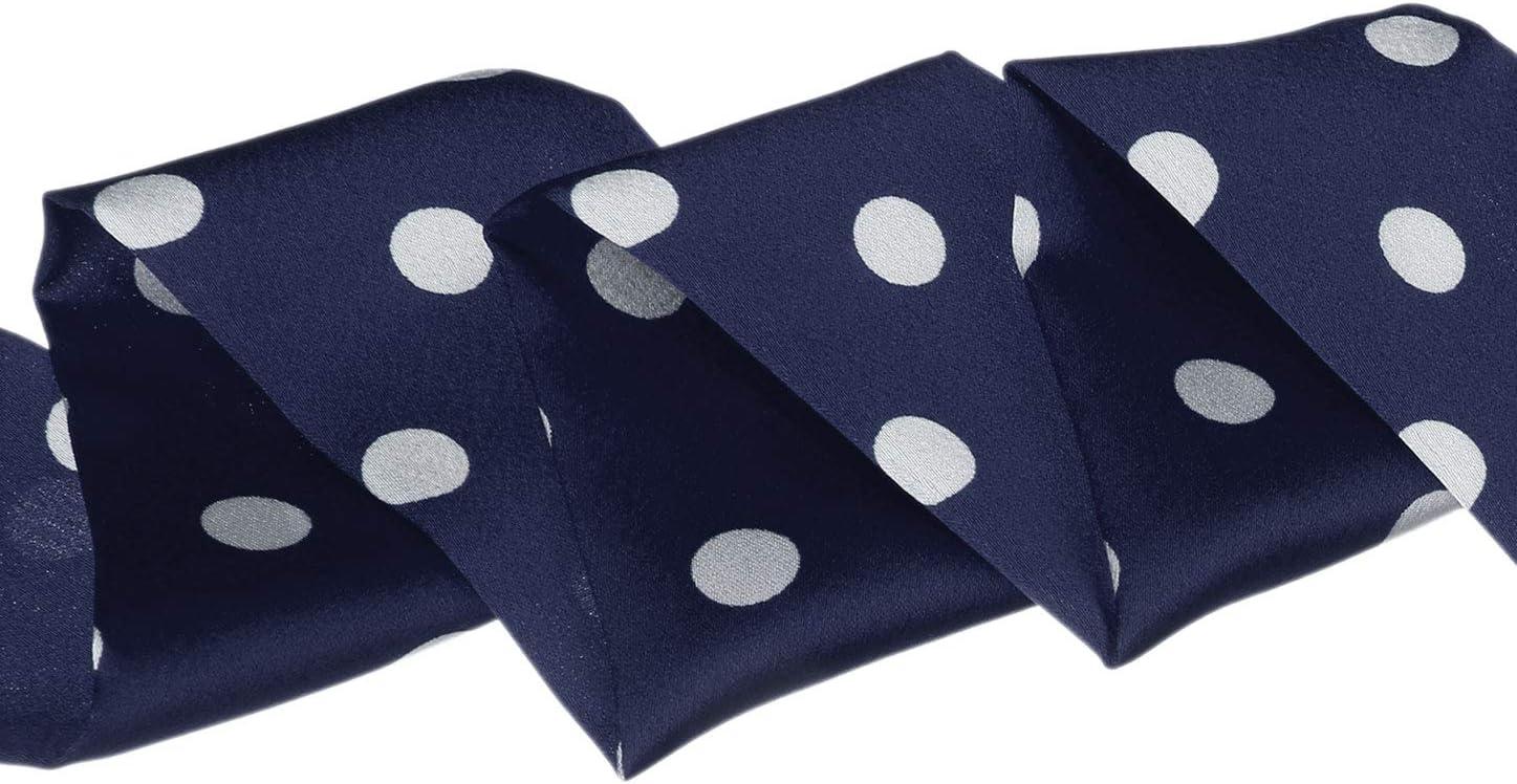 Allegra K 50s Skinny Silky Scarf Polka Dots Waistband Long Narrow Neckscarf Bag Handle Accessory(Navy Blue Medium Dot)