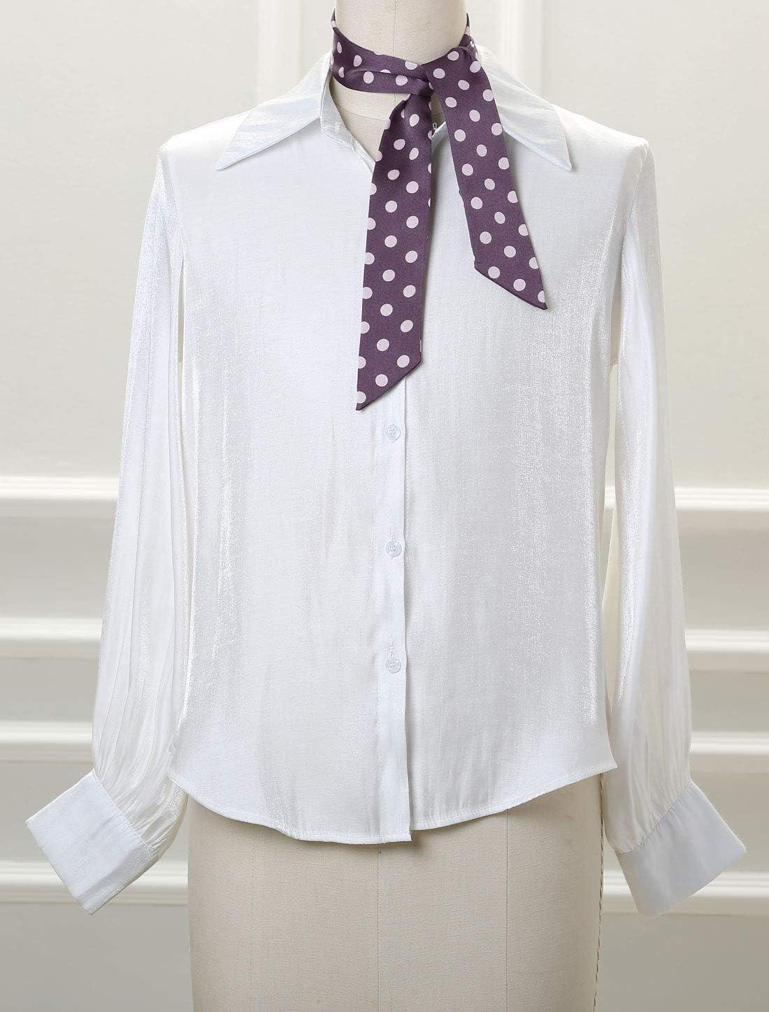 Allegra K 50s Skinny Silky Scarf Polka Dots Waistband Long Narrow Neckscarf Bag Handle Accessory(Purple Medium Dot)
