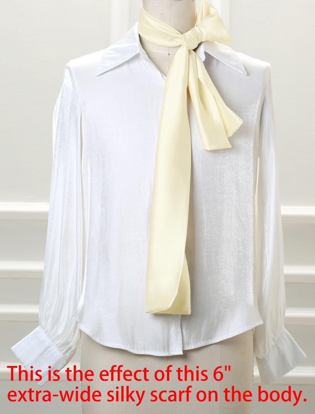 Allegra K 6″ Extra-Wide Silky Solid Color Long Scarves Ribbon Neckerchief Neck Wraps for Women(Beige)