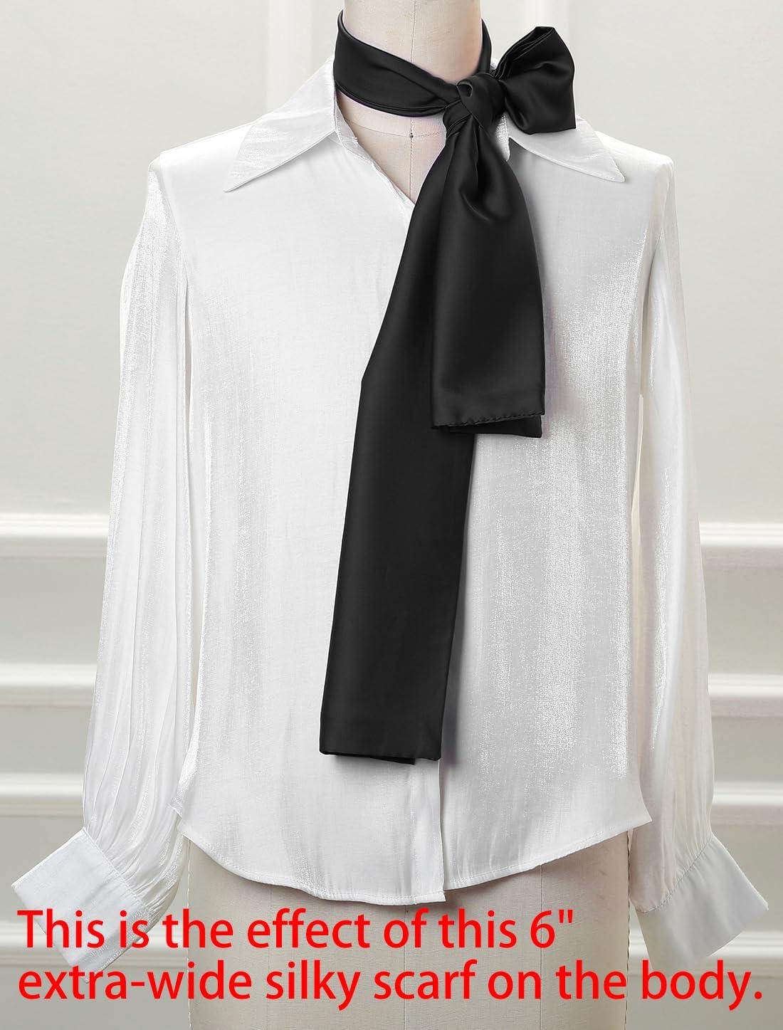 Allegra K 6″ Extra-Wide Silky Solid Color Long Scarves Ribbon Neckerchief Neck Wraps for Women(Black)