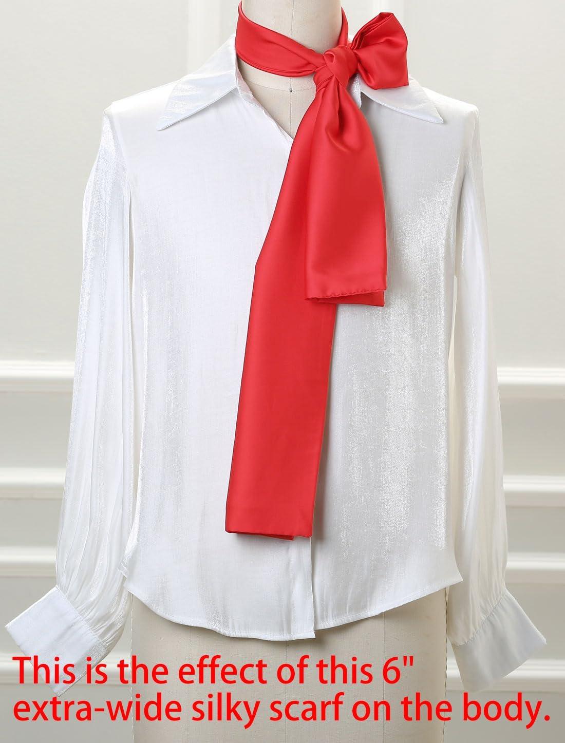 Allegra K 6″ Extra-Wide Silky Solid Color Long Scarves Ribbon Neckerchief Neck Wraps for Women(Red)