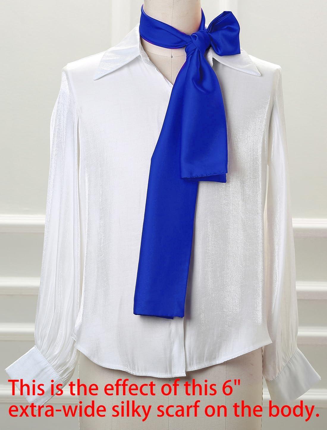 Allegra K 6" Extra-Wide Silky Solid Color Long Scarves Ribbon Neckerchief Neck Wraps for Women(Royal Blue)