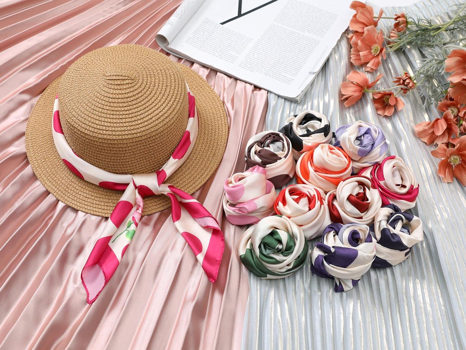 Allegra K 70cm Polka Dots Square Scarf Neck Scarves Kerchief Neckerchief Headband for Women(Hot Pink Rose)