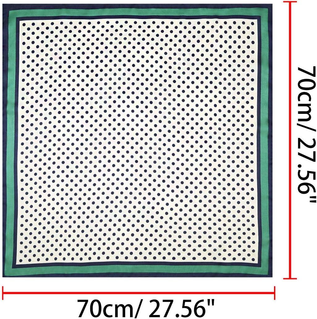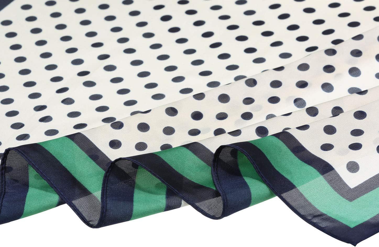 Allegra K 70cm Polka Dots Square Scarf Neck Scarves Kerchief Neckerchief Headband for Women(Navy Blue Green)