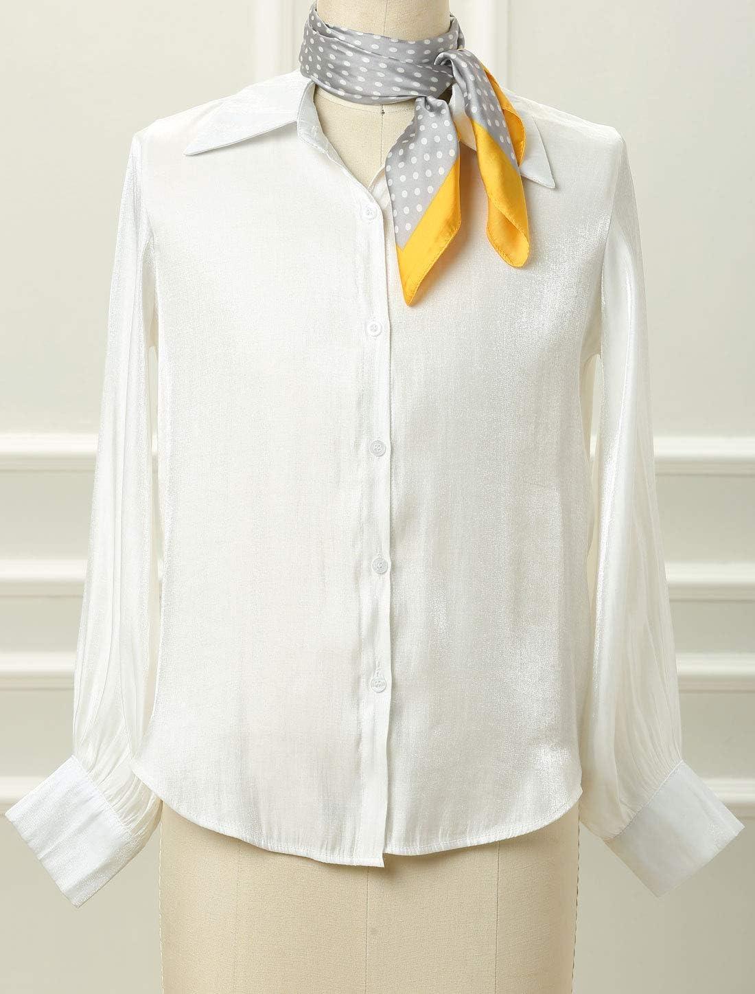 imageAllegra K 70cm Polka Dots Square Scarf Neck Scarves Kerchief Neckerchief Headband for WomenYellow Gray