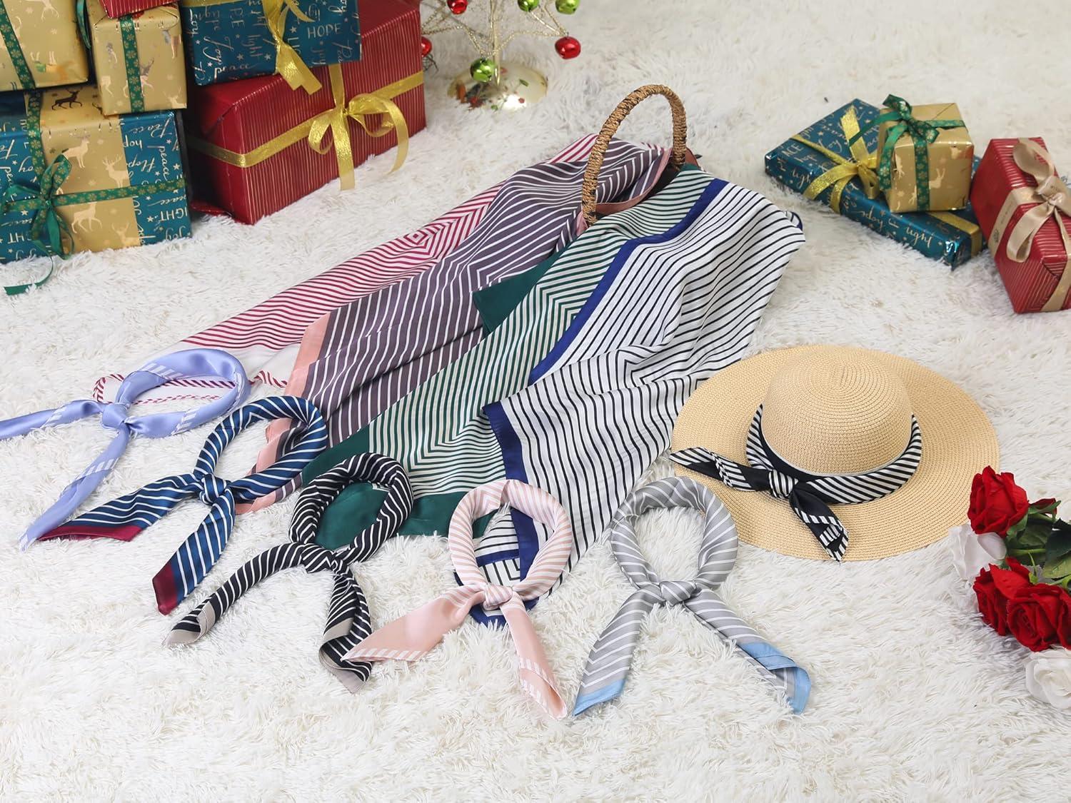 Allegra K 70cm Women Stripe Print Square Scarves Kerchief Neck Scarf Neckerchief Headband(Gray)