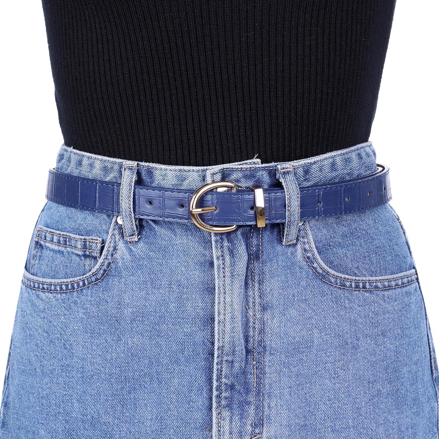 Allegra K Alligator Embossed Belts Leather Waist Alloy Pin Buckle Belt for Women(Dark Blue)