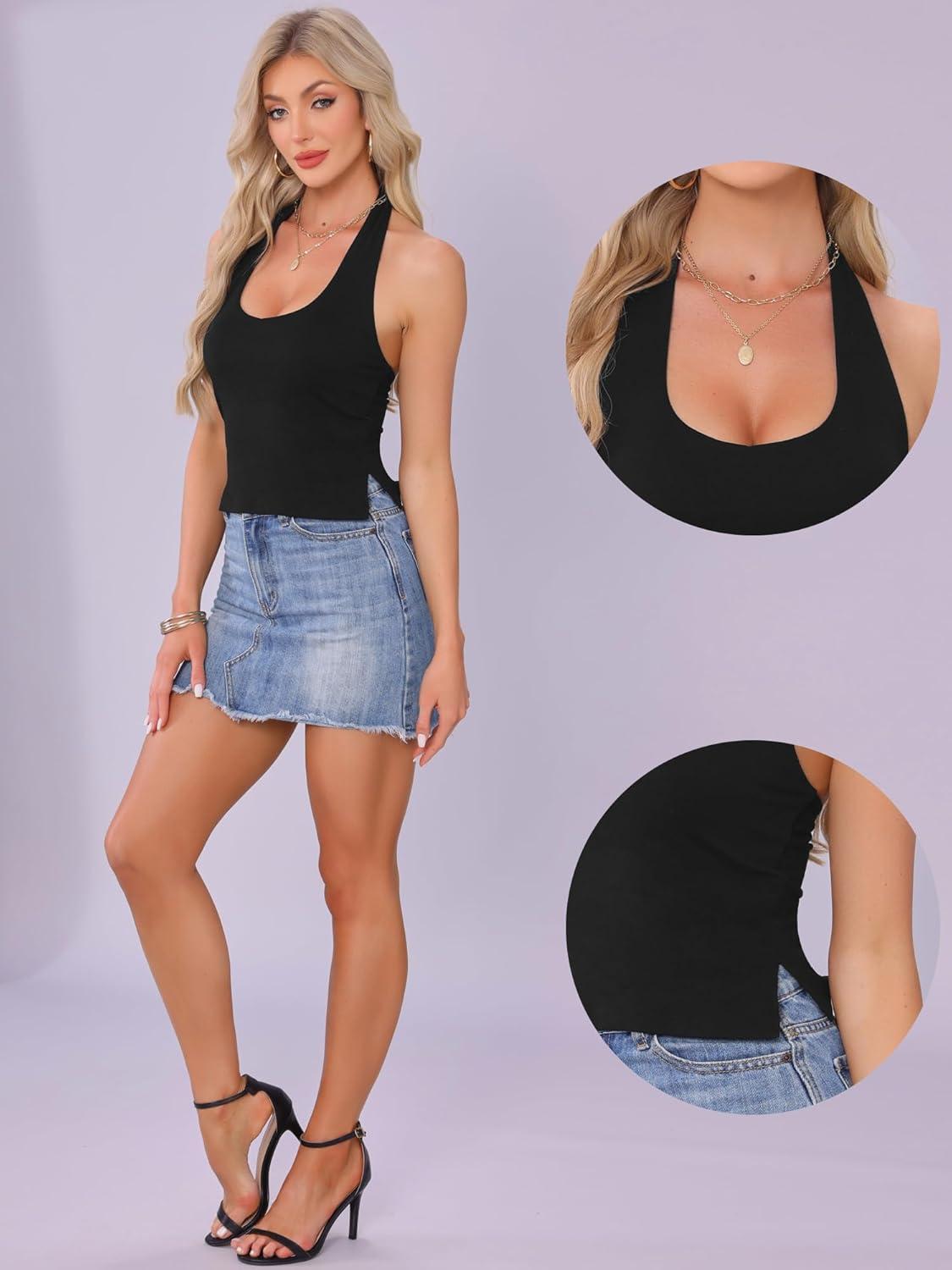 Allegra K Backless Halter Tops for Women 2025 Summer Casual Open Back Cute Sleeveless Tank Top(Black)