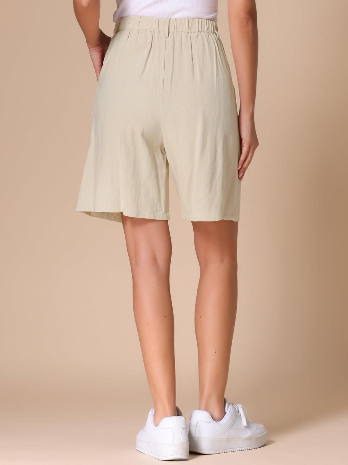 Allegra K Bermuda Shorts for Women's High Waisted Linen Wide Leg Elastic Waist Dressy Casual Summer Shorts(Apricot)