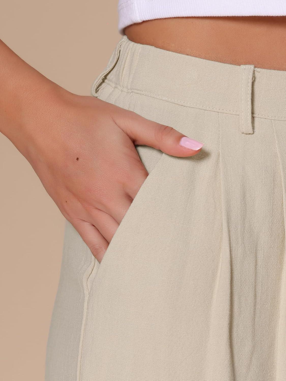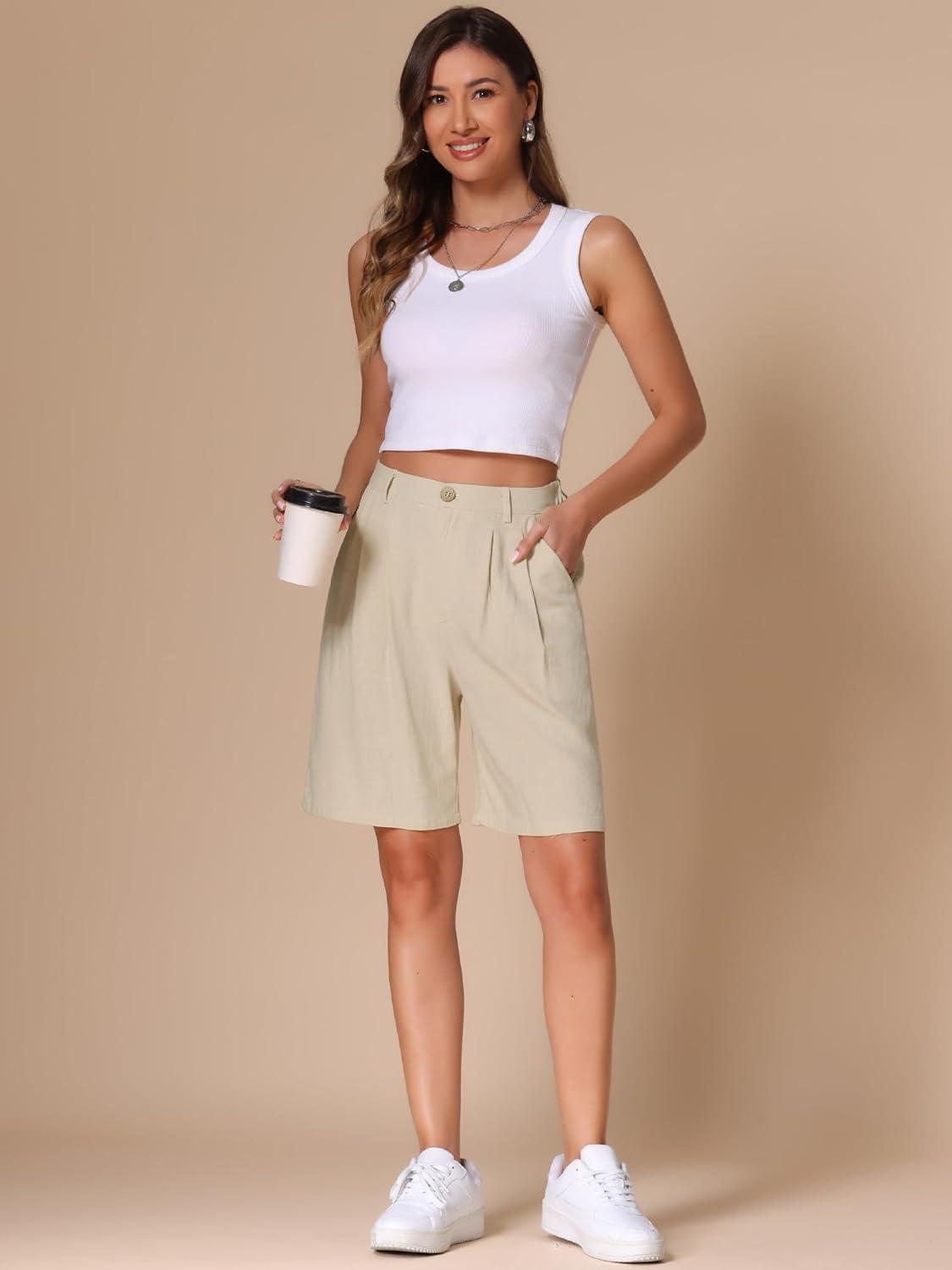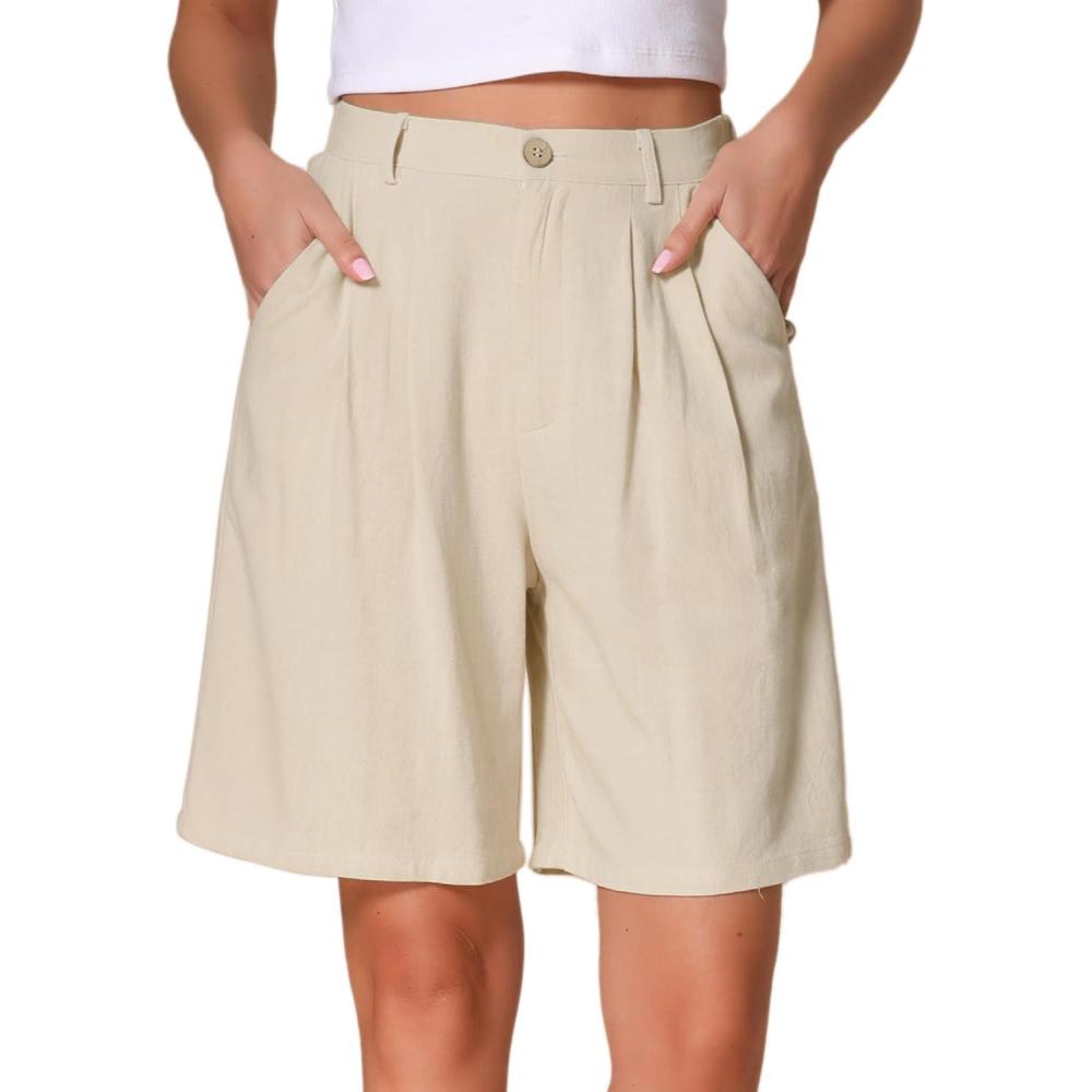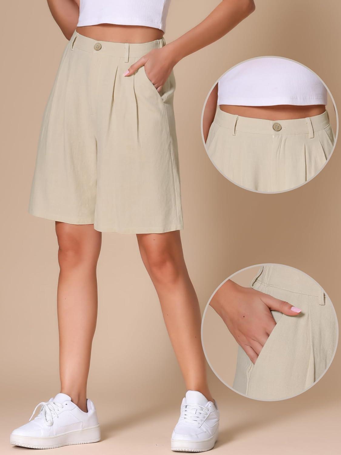 Allegra K Bermuda Shorts for Women’s High Waisted Linen Wide Leg Elastic Waist Dressy Casual Summer Shorts(Apricot)