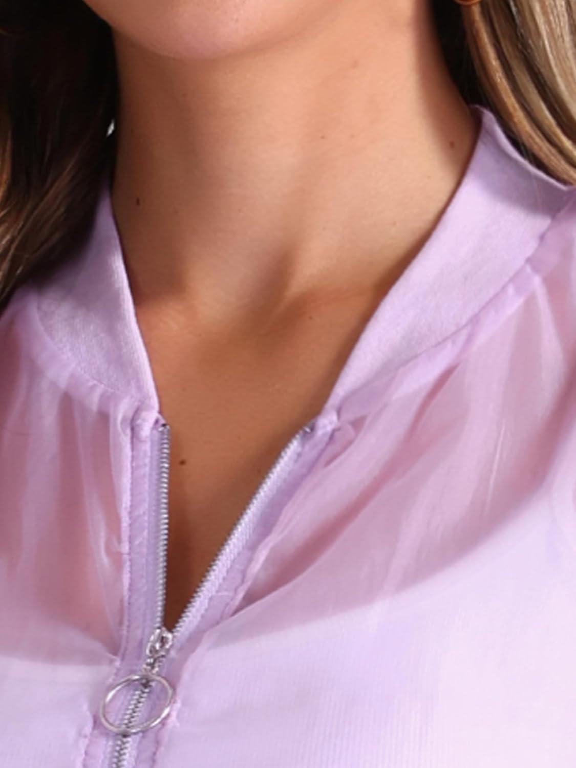 Allegra K Bomber Crop Jacket for Women's Sheer Mesh Lightweight Long Sleeve Jackets(Light Purple)