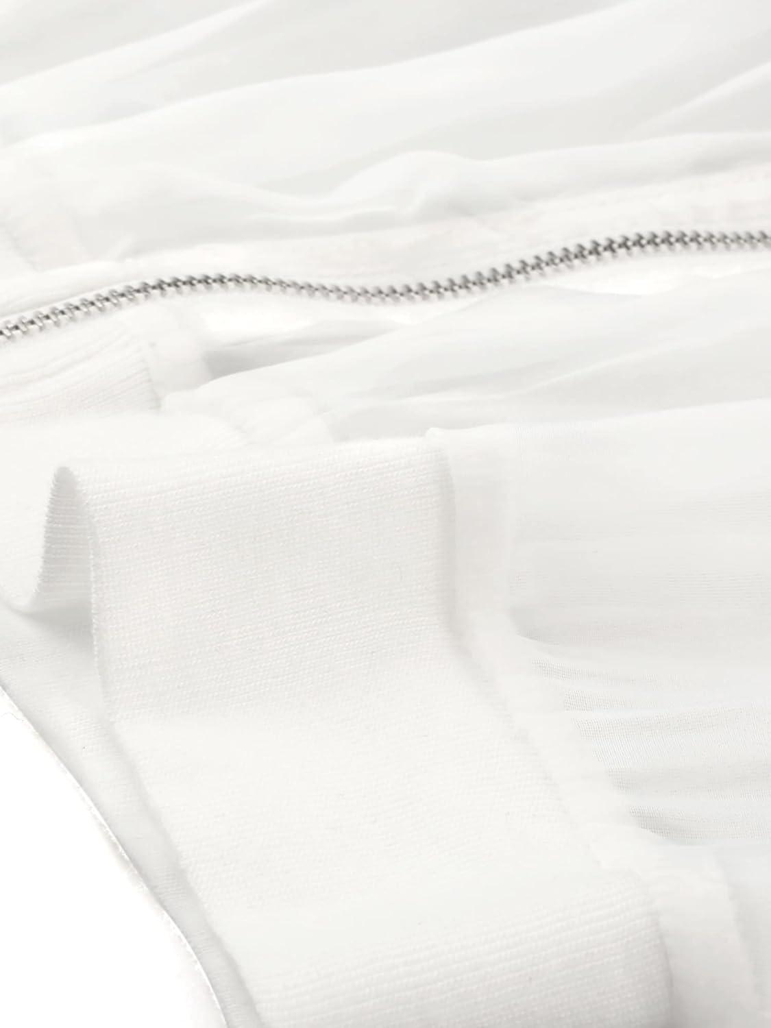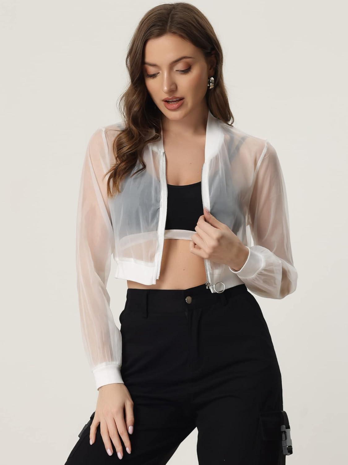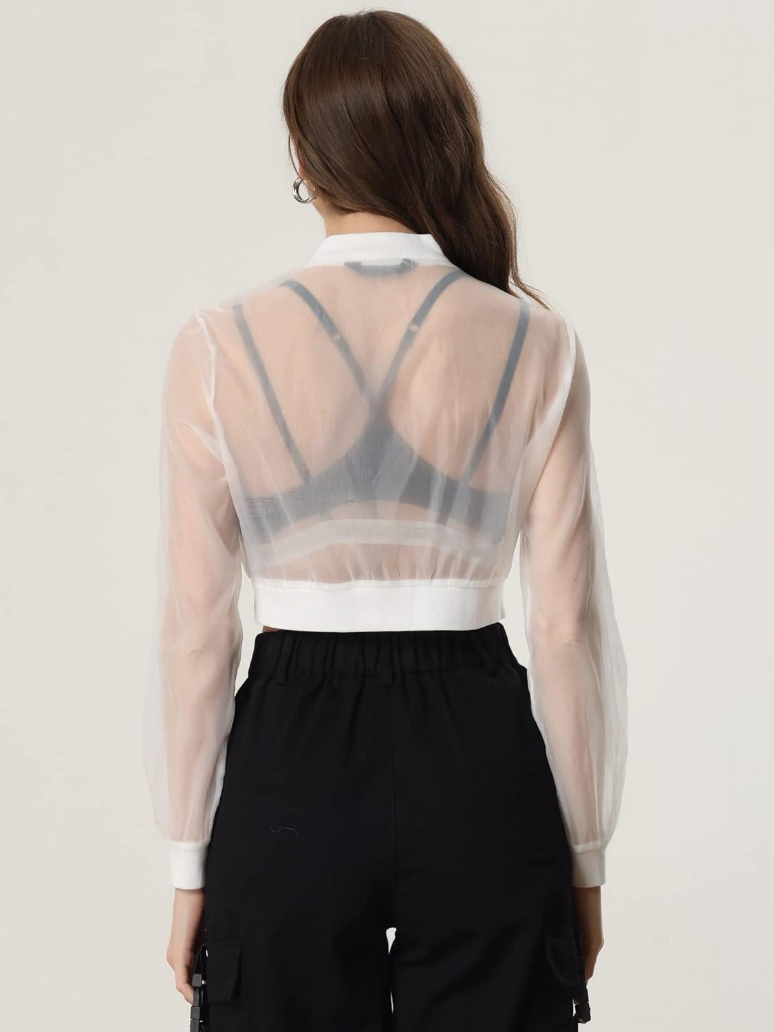 Allegra K Bomber Crop Jacket for Women’s Sheer Mesh Lightweight Long Sleeve Jackets(White)