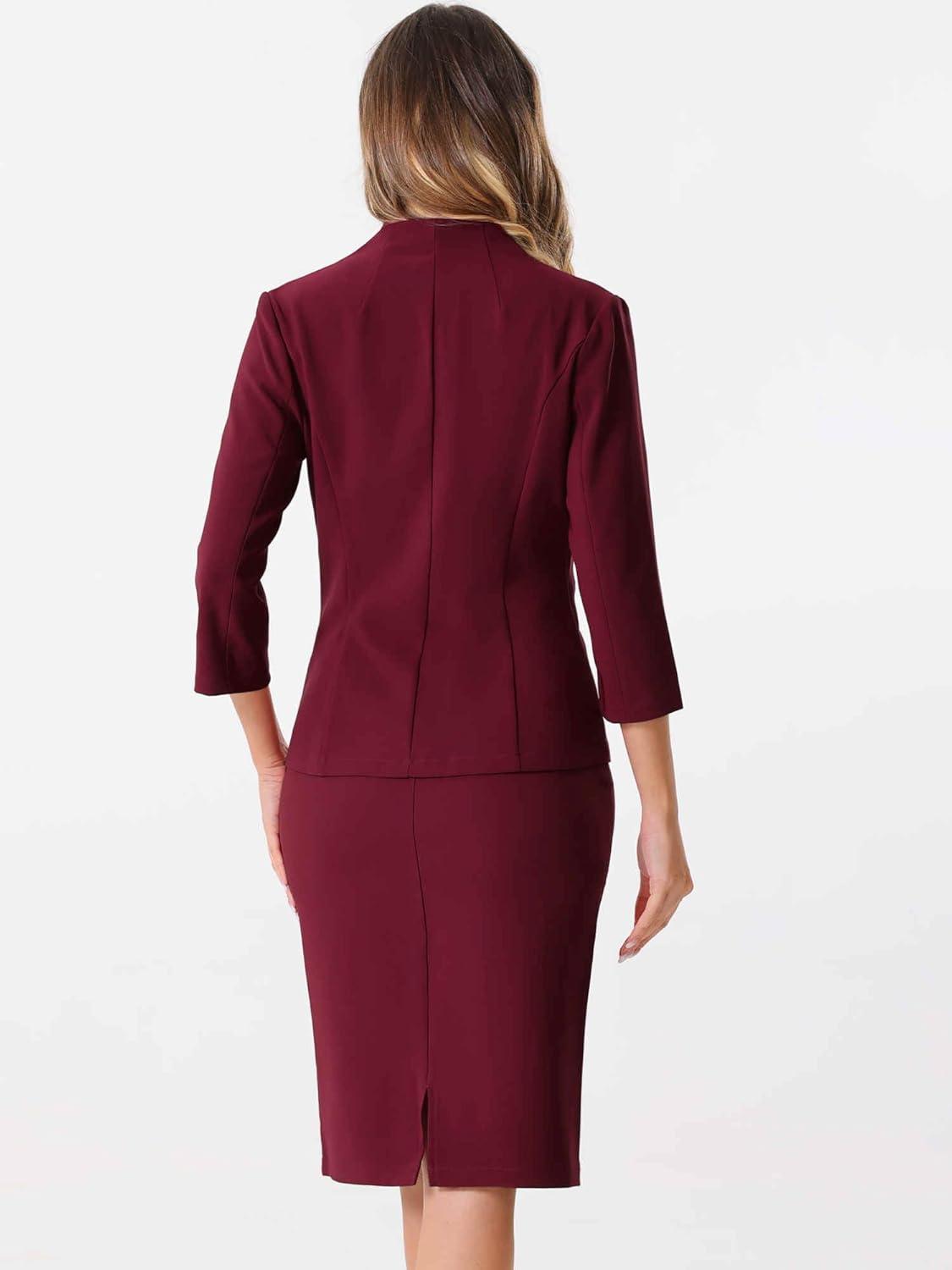Allegra K Business Skirt Suit Set for Women’s 2 Piece Office Work Outfit Collarless Blazer Pencil Skirt(Dark Red)