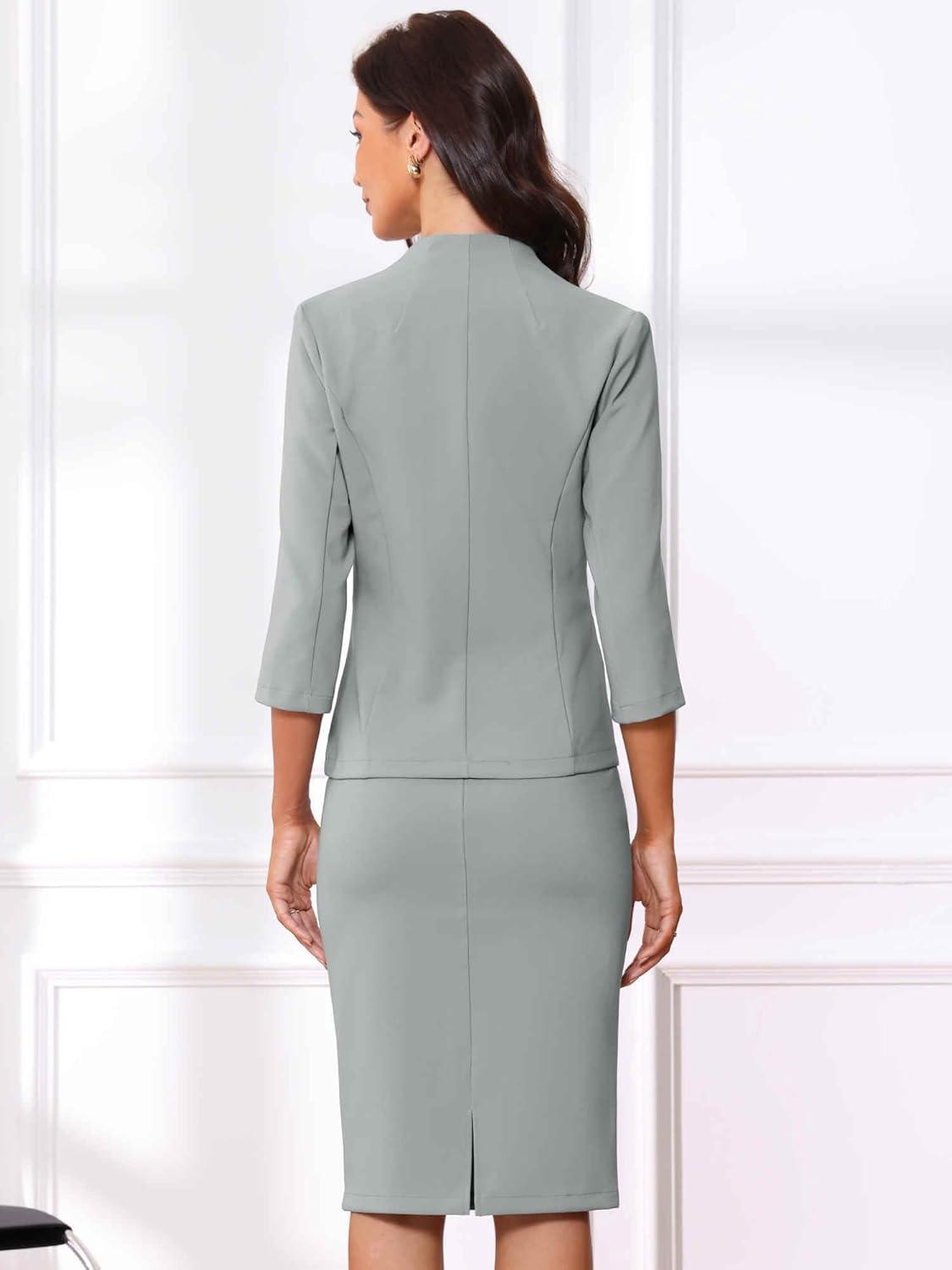 Allegra K Business Skirt Suit Set for Women’s 2 Piece Office Work Outfit Collarless Blazer Pencil Skirt(Gray)