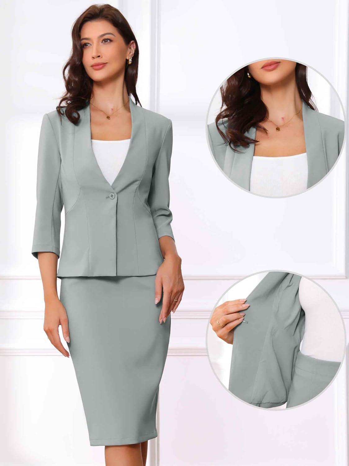 Allegra K Business Skirt Suit Set for Women's 2 Piece Office Work Outfit Collarless Blazer Pencil Skirt(Gray)