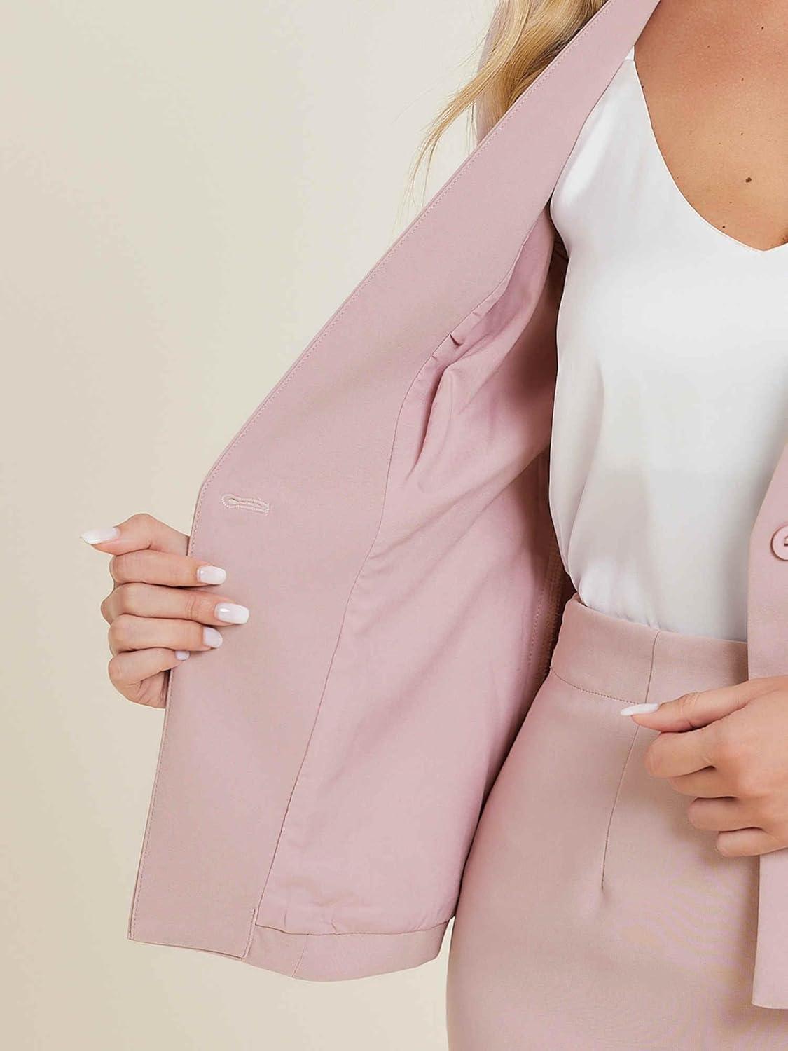 Allegra K Business Skirt Suit Set for Women's 2 Piece Office Work Outfit Collarless Blazer Pencil Skirt(Pink)