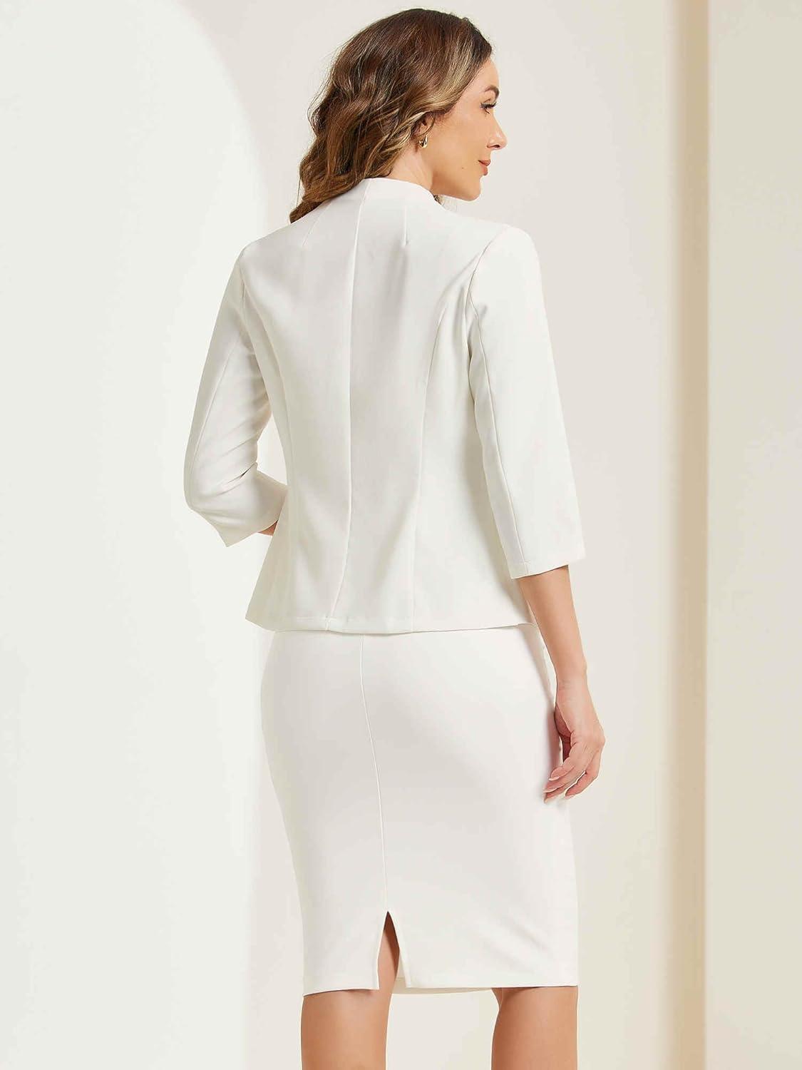 Allegra K Business Skirt Suit Set for Women’s 2 Piece Office Work Outfit Collarless Blazer Pencil Skirt(White)