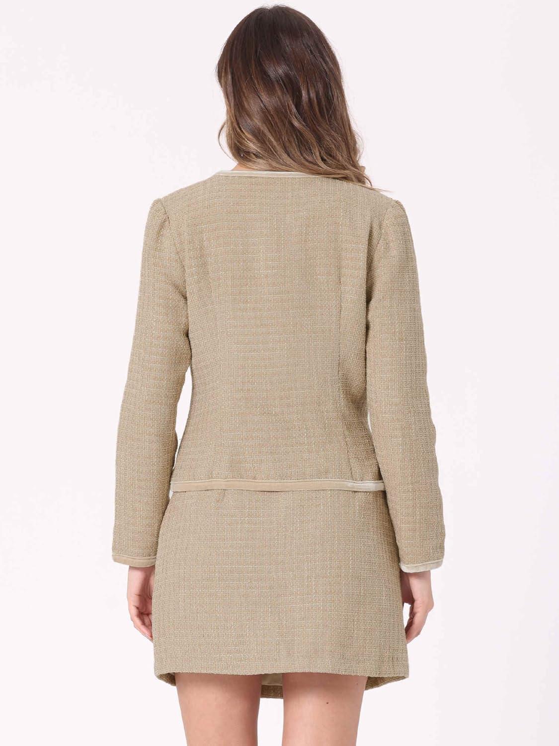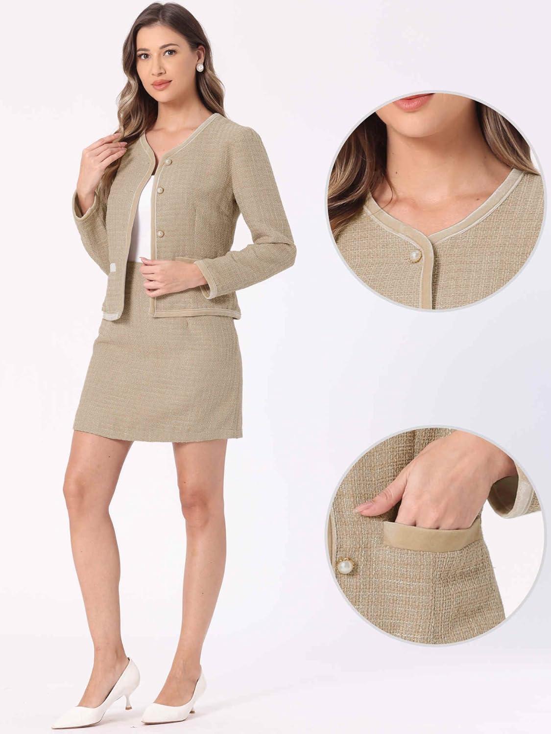 imageAllegra K Business Suit Set for Womens 2 Piece Outfits Plaid Tweed Easter Short Blazer Jacket and Skirt SetsKhaki