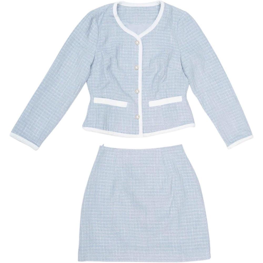imageAllegra K Business Suit Set for Womens 2 Piece Outfits Plaid Tweed Easter Short Blazer Jacket and Skirt SetsLight Blue