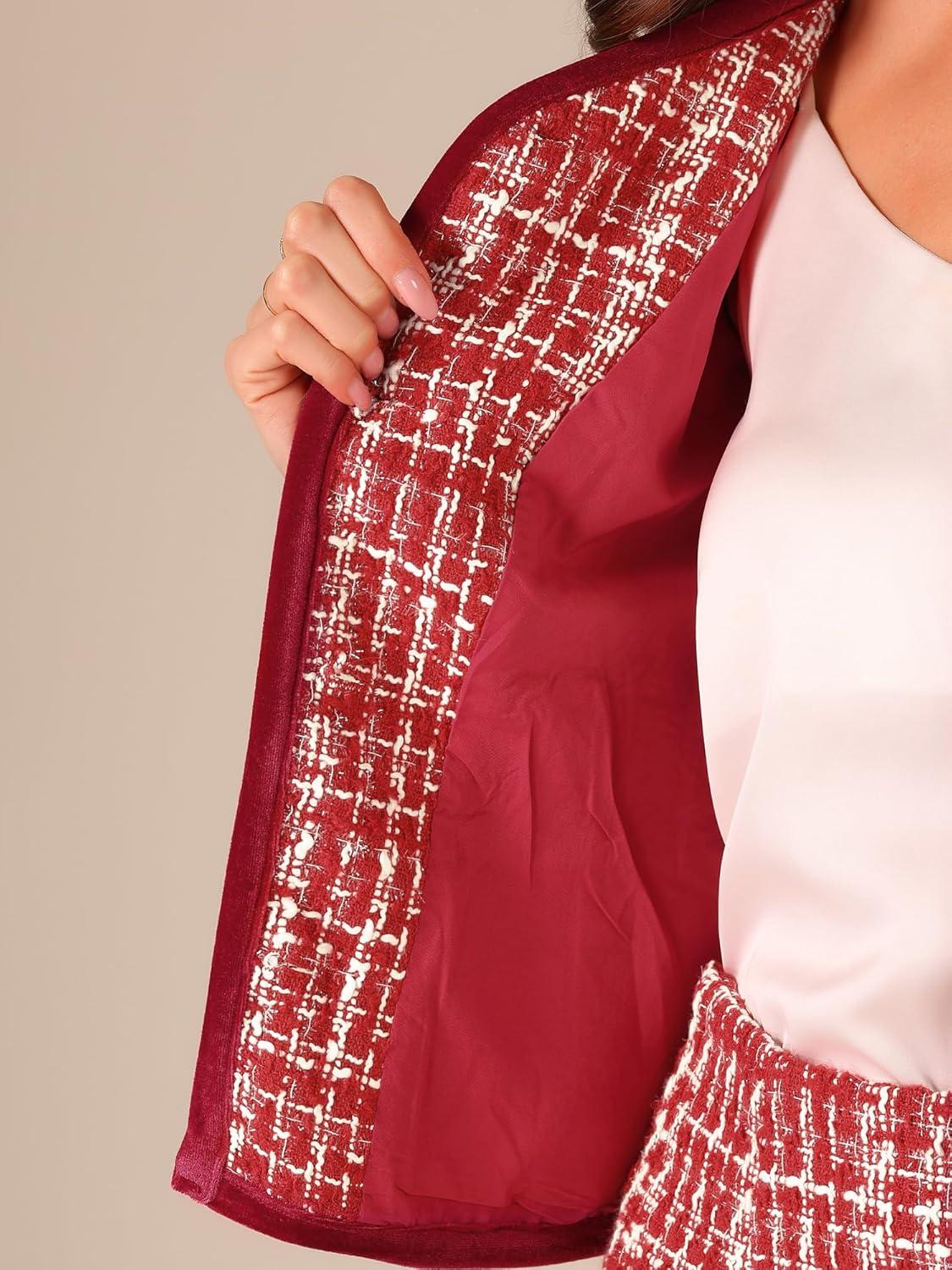 Allegra K Business Suit Set for Women’s 2 Piece Outfits Plaid Tweed Easter Short Blazer Jacket and Skirt Sets(Red)