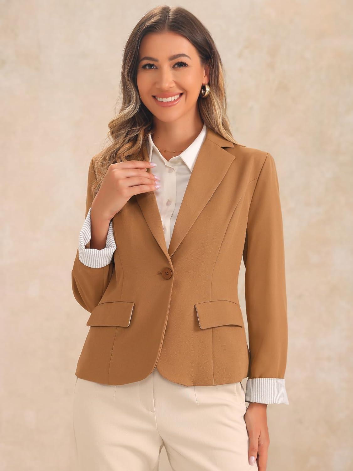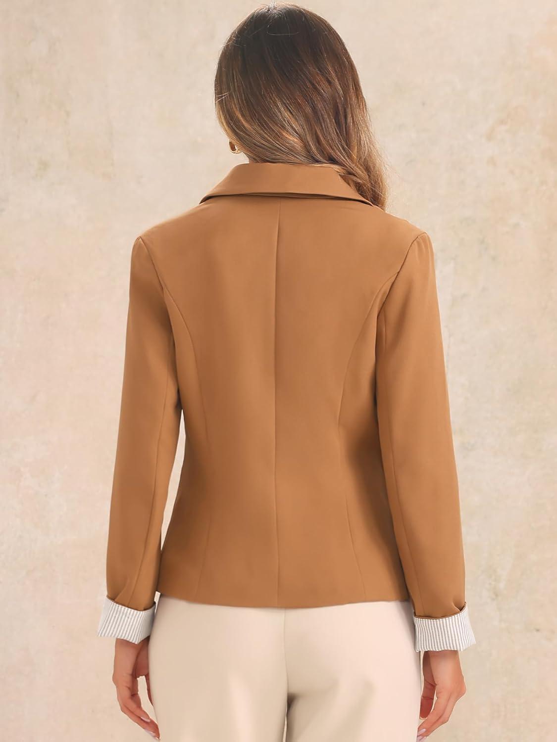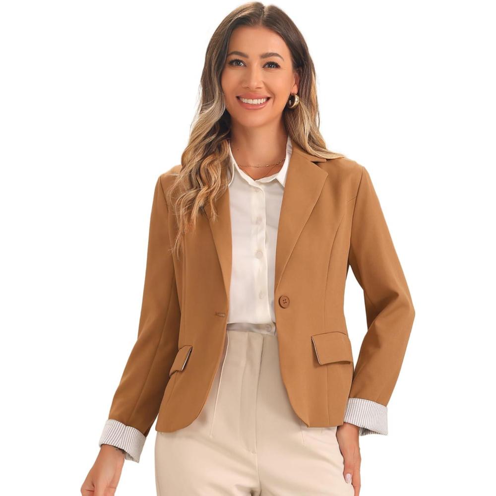 Allegra K Casual Blazer for Women’s Lapel Collar Long Sleeve Cropped Blazer(Brown)