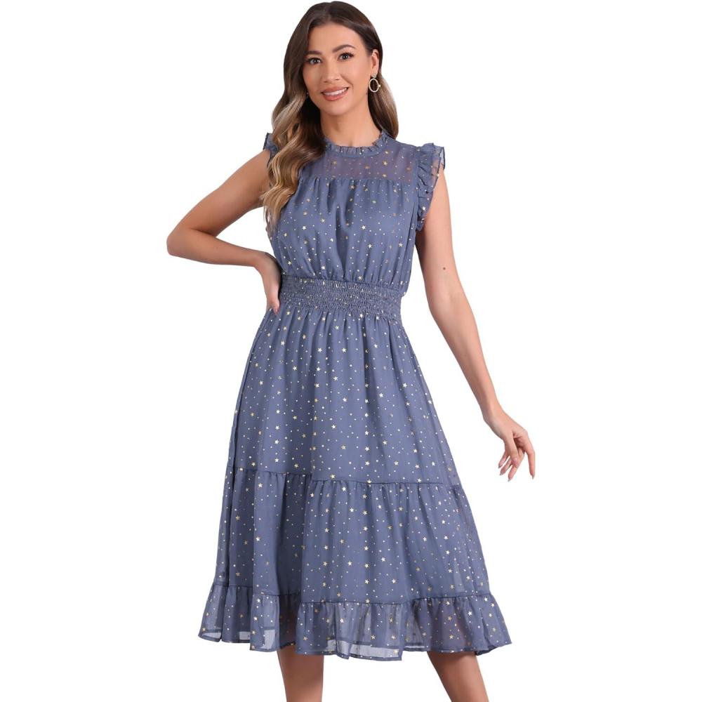 imageAllegra K Casual Chiffon Midi Dress for Women Halloween Sleeveless Smocked Waist Gilding Metallic Stars Party DressesGrey Blue