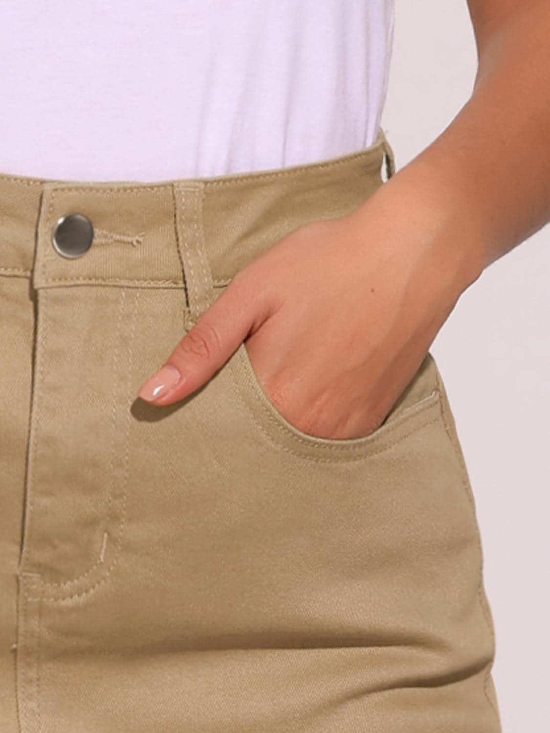 imageAllegra K Casual Denim Skirt for Womens High Waist Split Back Pockets Midi Jean SkirtsKhaki