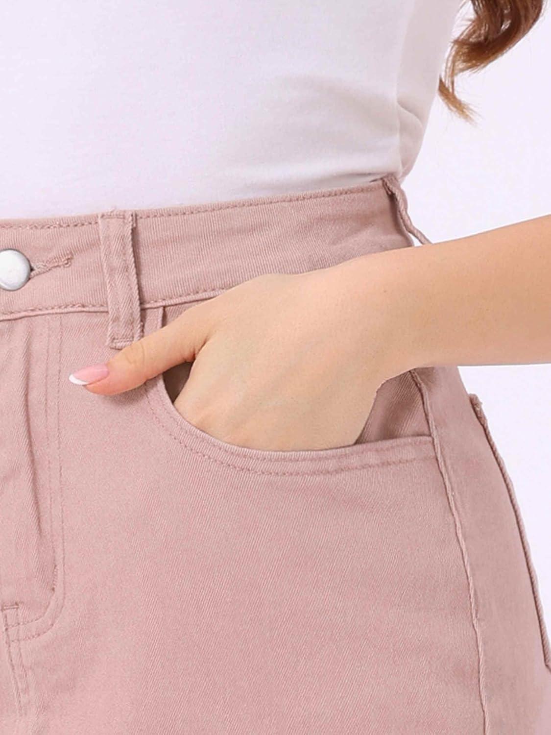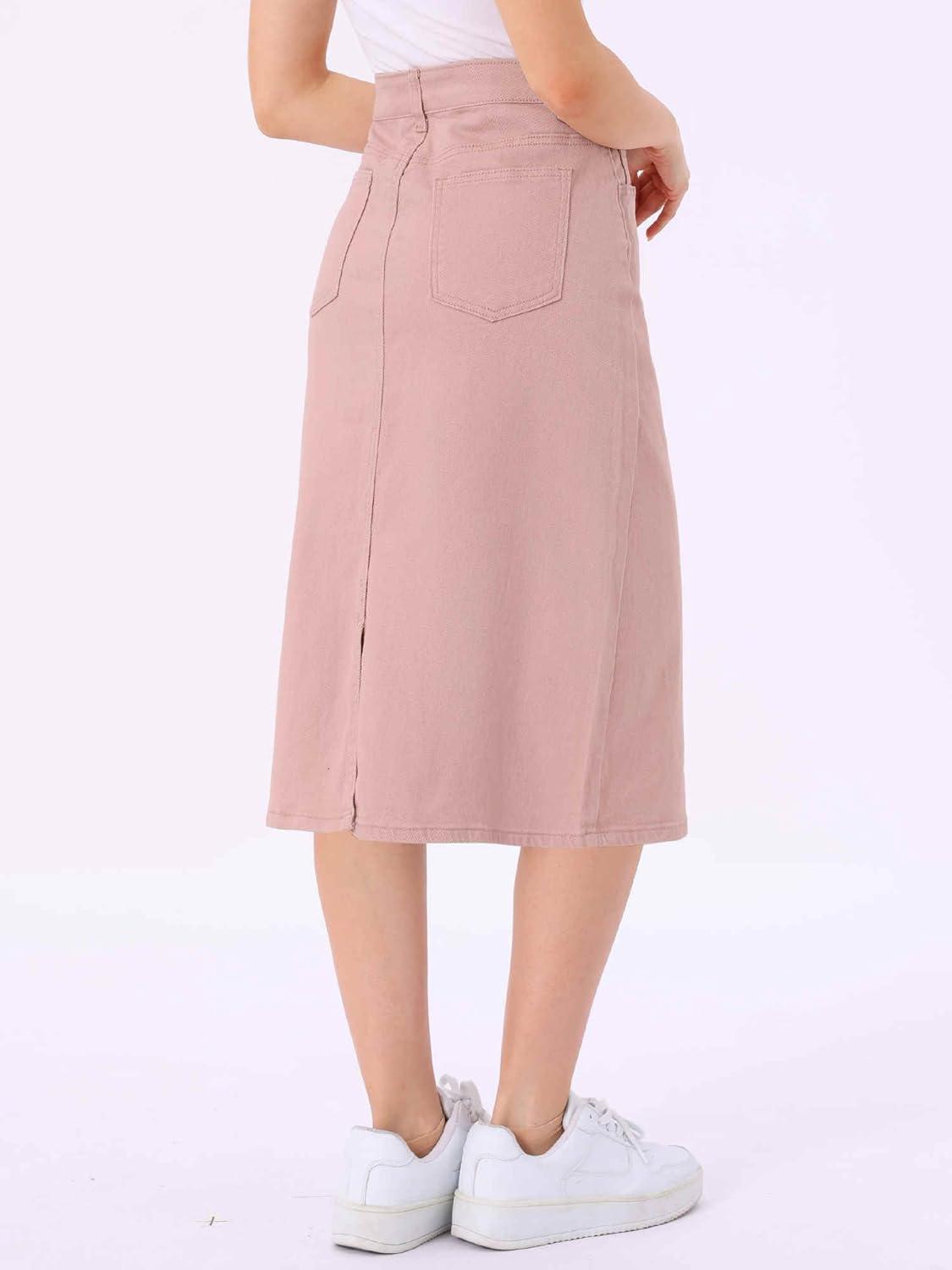 Allegra K Casual Denim Skirt for Women’s High Waist Split Back Pockets Midi Jean Skirts(Pink)
