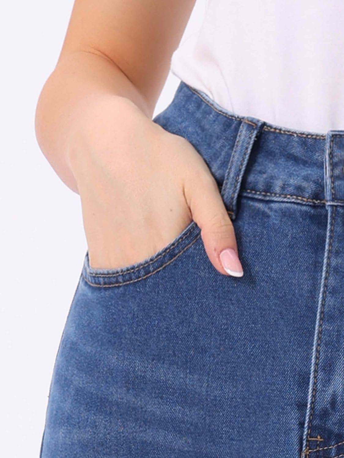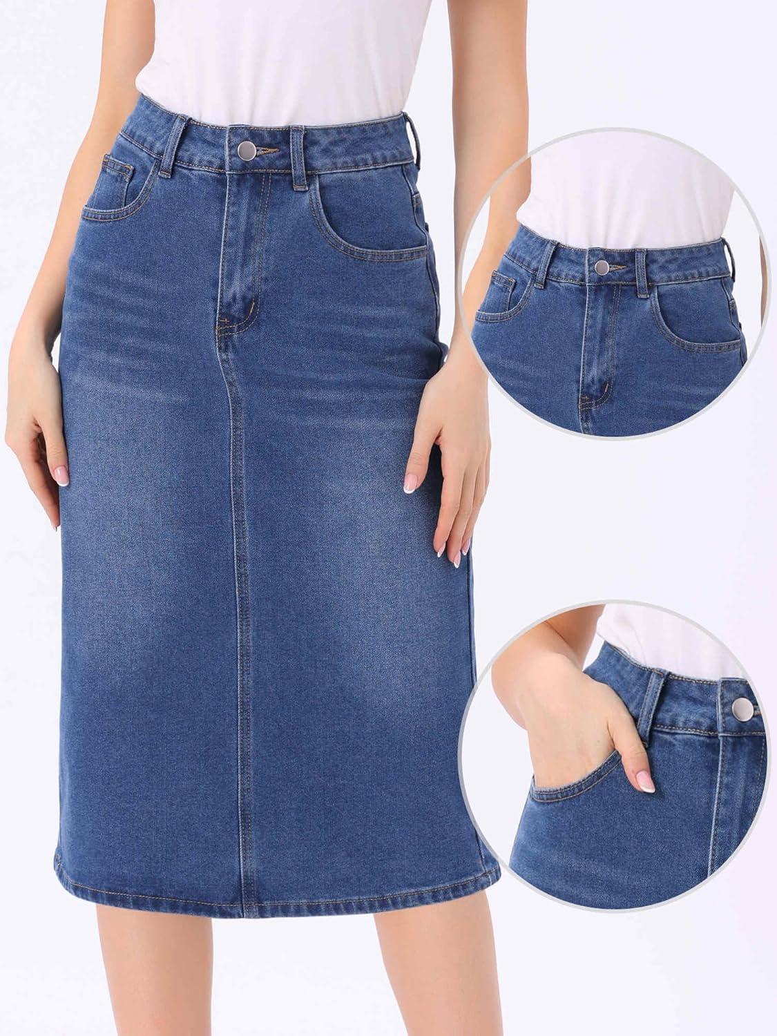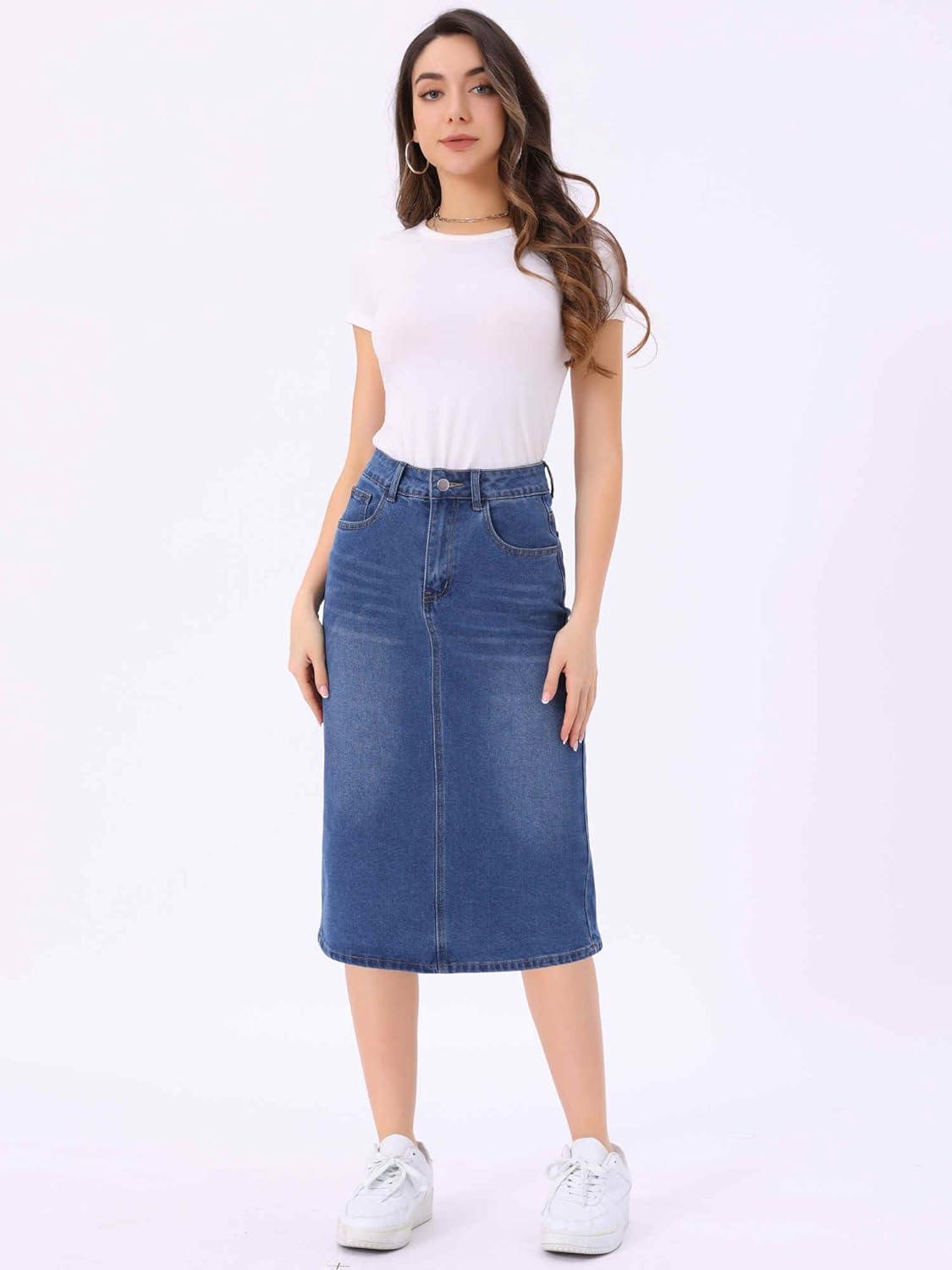 Allegra K Casual Denim Skirt for Women’s High Waist Split Back Pockets Midi Jean Skirts(Sky Blue)