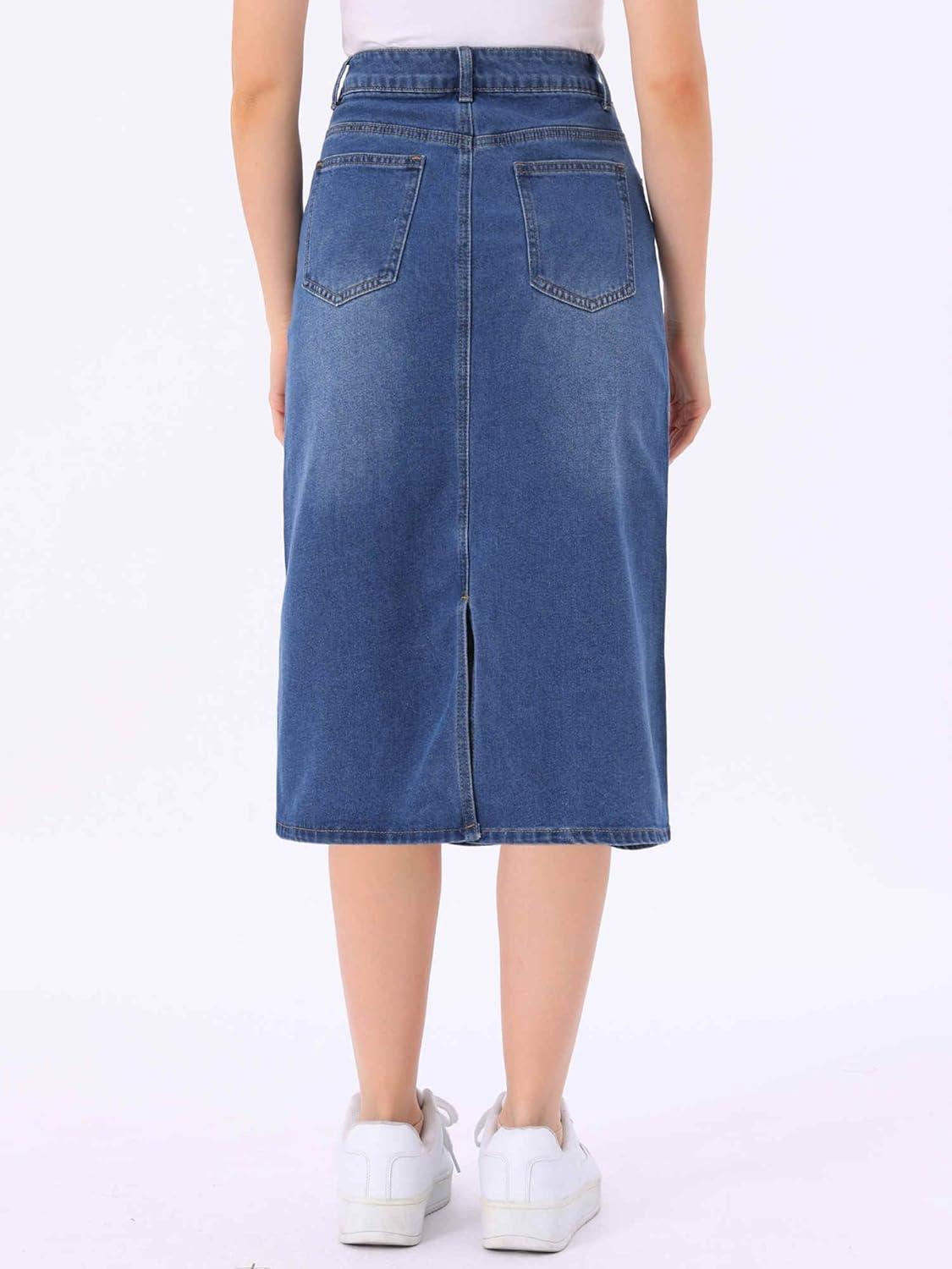 Allegra K Casual Denim Skirt for Women's High Waist Split Back Pockets Midi Jean Skirts(Sky Blue)