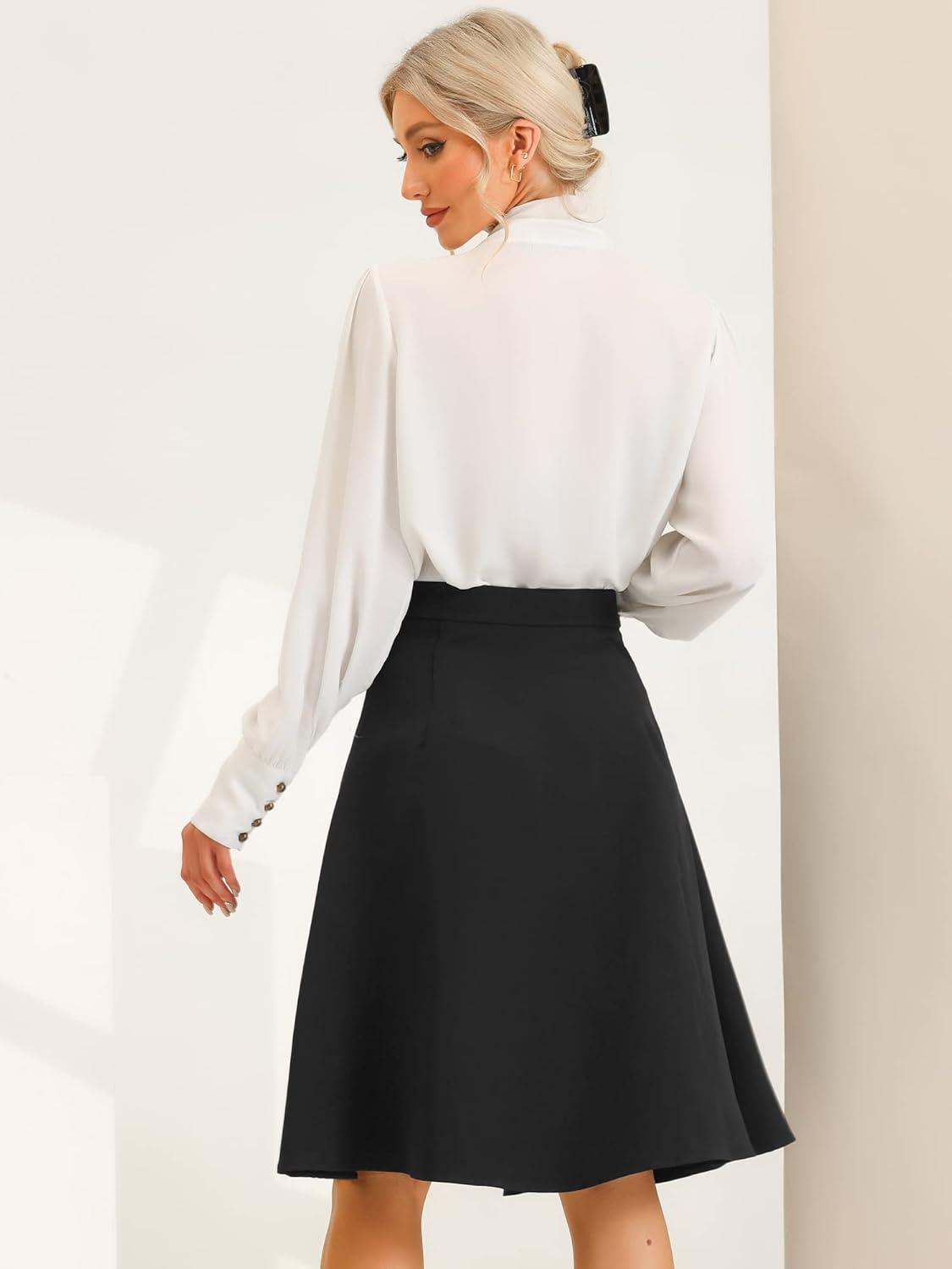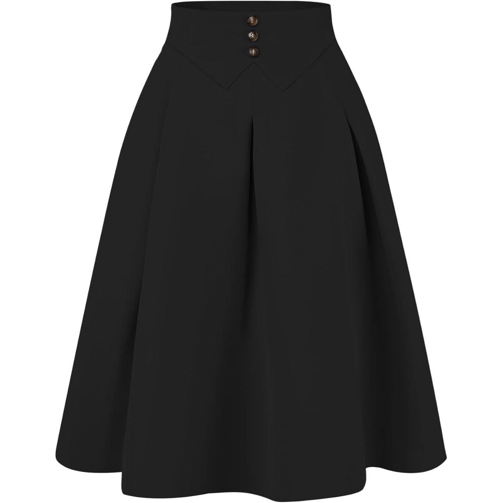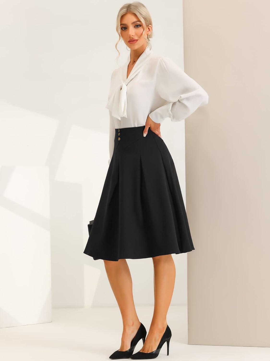 Allegra K Casual Office A-Line Skirt for Women's Knee Length Button Decor Midi Pleated Skirts(Black)