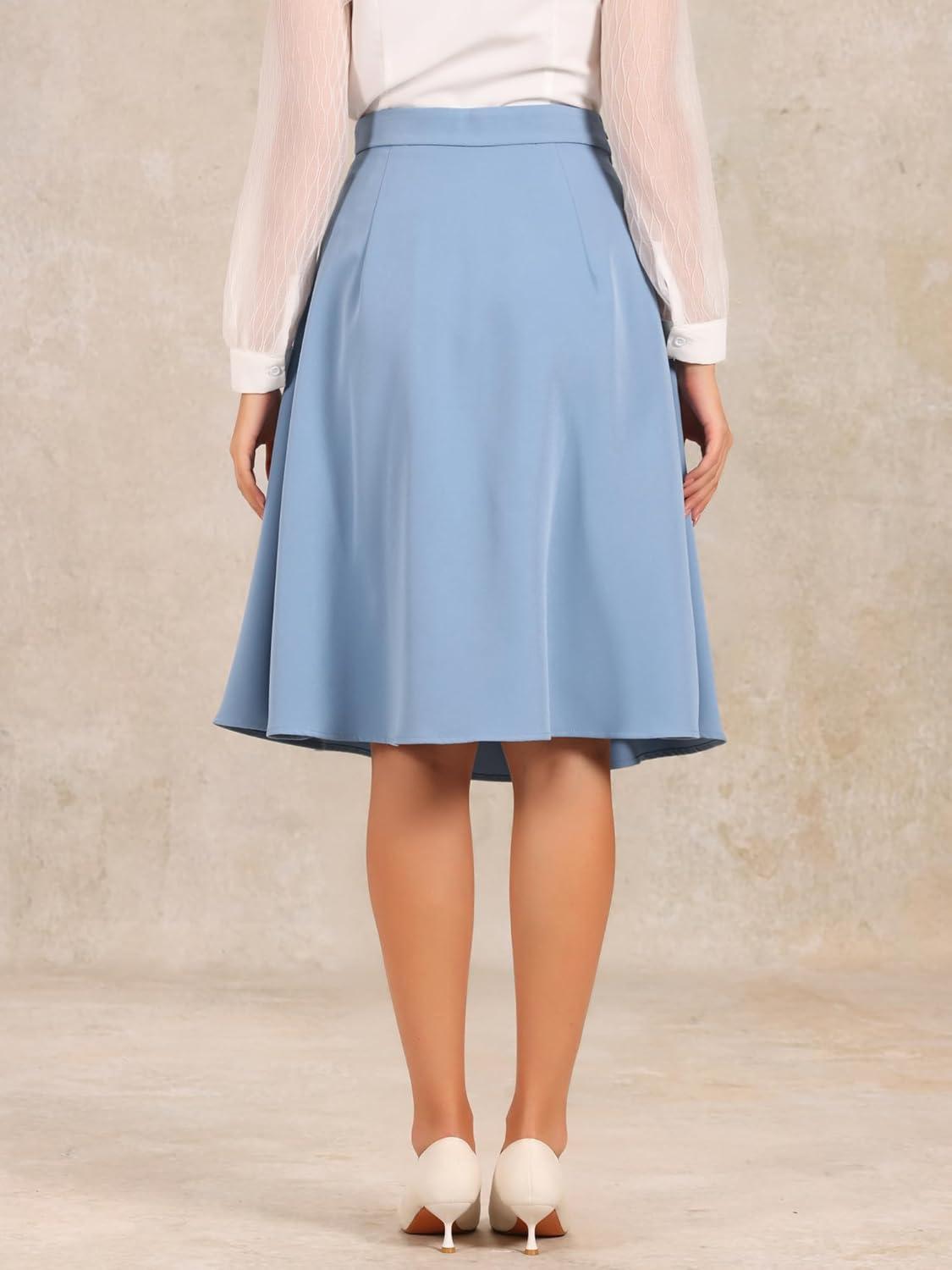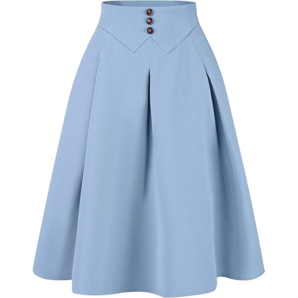 Allegra K Casual Office A-Line Skirt for Women’s Knee Length Button Decor Midi Pleated Skirts(Lake Blue)