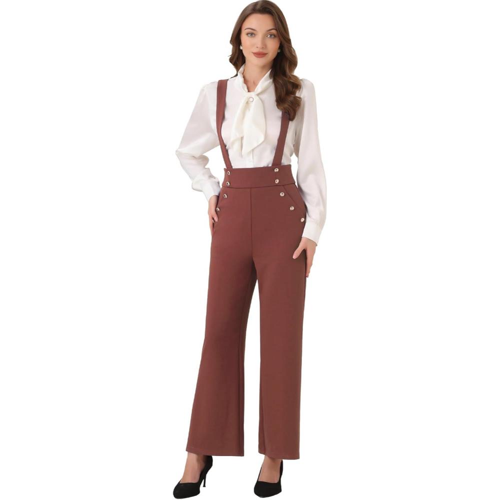 imageAllegra K Casual Office Jumpsuits for Womens Adjustable Straps Wide Leg Suspenders Pants OverallBrown