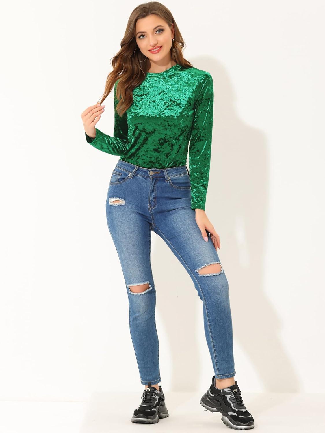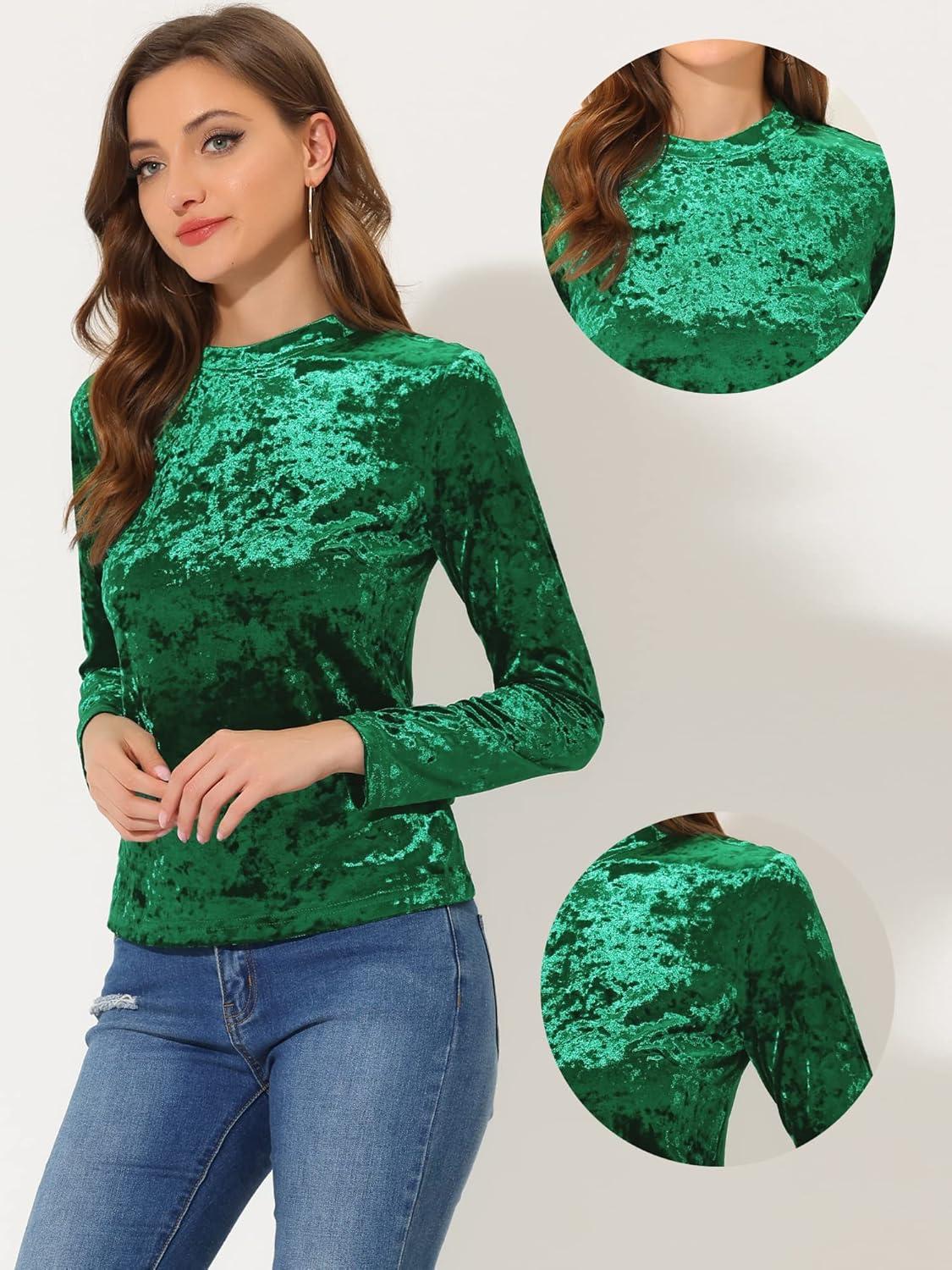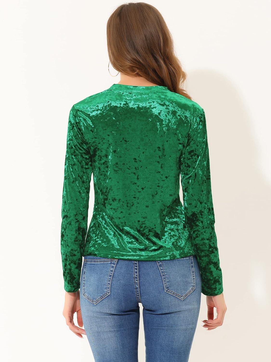 imageAllegra K Casual Velvet Top for Womens Soft Vintage Crew Neck Long Sleeve Christmas TShirtGreen