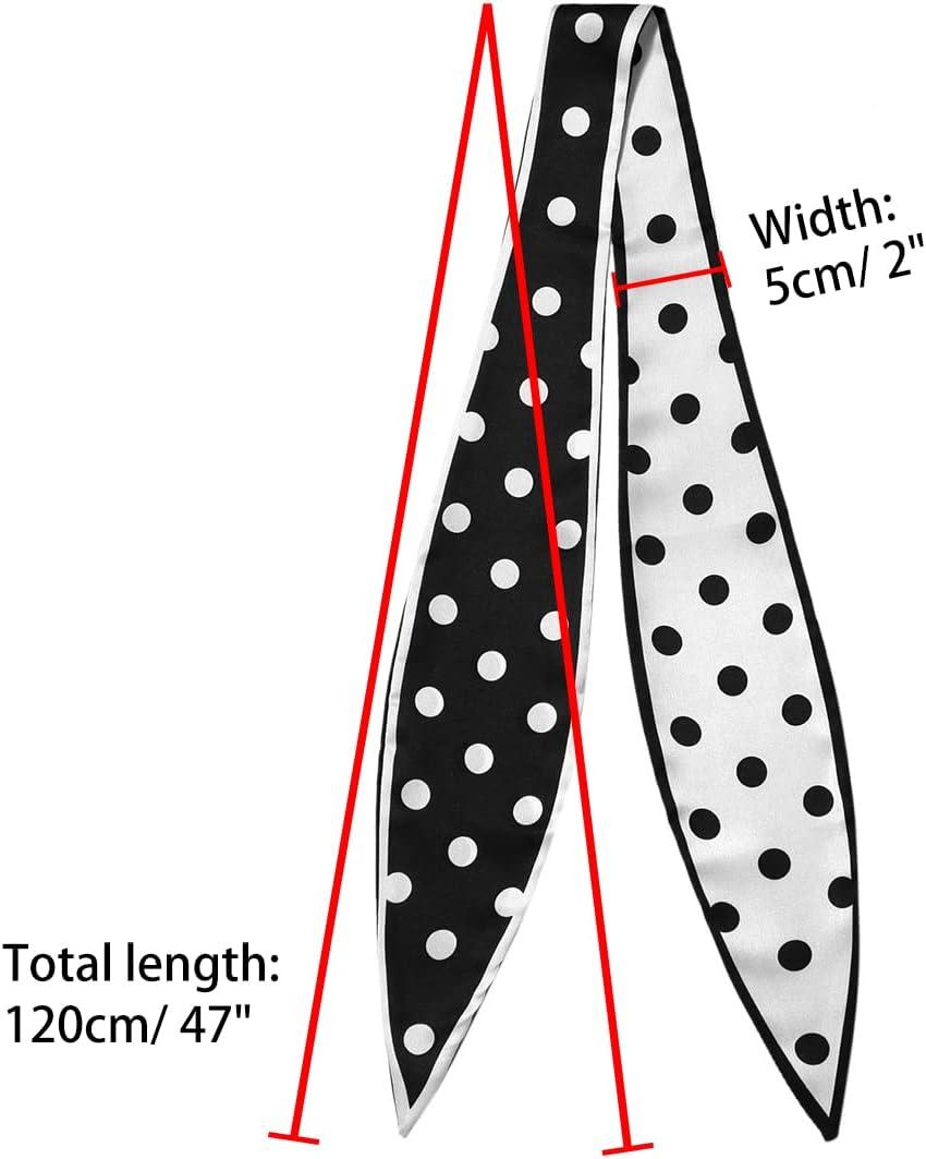 Allegra K Chic Polka Dots Women Neckerchief Skinny Scarves Hair Band Ribbon for Bag Accessory(Black Big Dot)